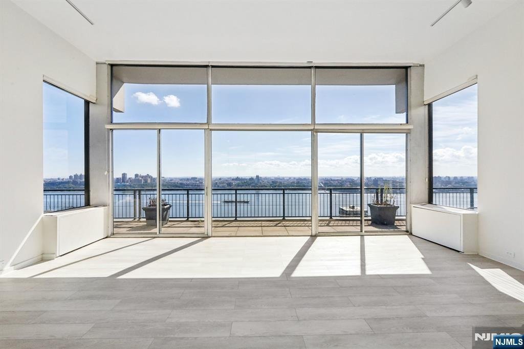 This exceptional 3-bedroom, 3.5-bath residence with an additional den approx. 300 sq ft, combines expansive living with unparalleled city and river views stretching from the George Washington Bridge to downtown Manhattan. Floor-to-ceiling windows and sliding glass doors flood the interiors with natural light and open to a private wraparound terrace, offering a seamless indoor-outdoor lifestyle. The home features an airy great room with soaring ceilings, a spacious dining area, and a flexible den perfect for an office or guest room. At the heart of the residence is a rare atrium, a bright and open space surrounded by glass that brings in natural light and greenery, creating a tranquil retreat within the home. The kitchen offers abundant storage and workspace, while the generously sized bedrooms provide both comfort and privacy. Set within a full-service community, residents enjoy 24-hour security, concierge, swimming pools, a fitness center, on-site parking, and convenient access to shopping, dining, and NYC transportation. With its dramatic views, sun-filled atrium, and unmatched amenities, this residence is a unique opportunity for sophisticated city living.