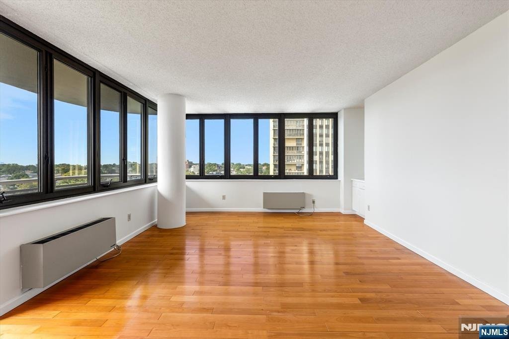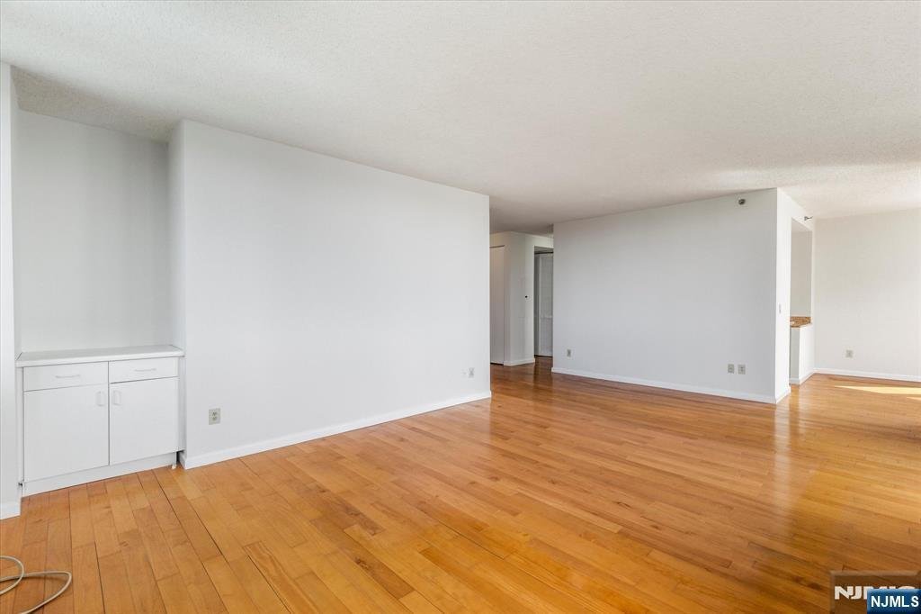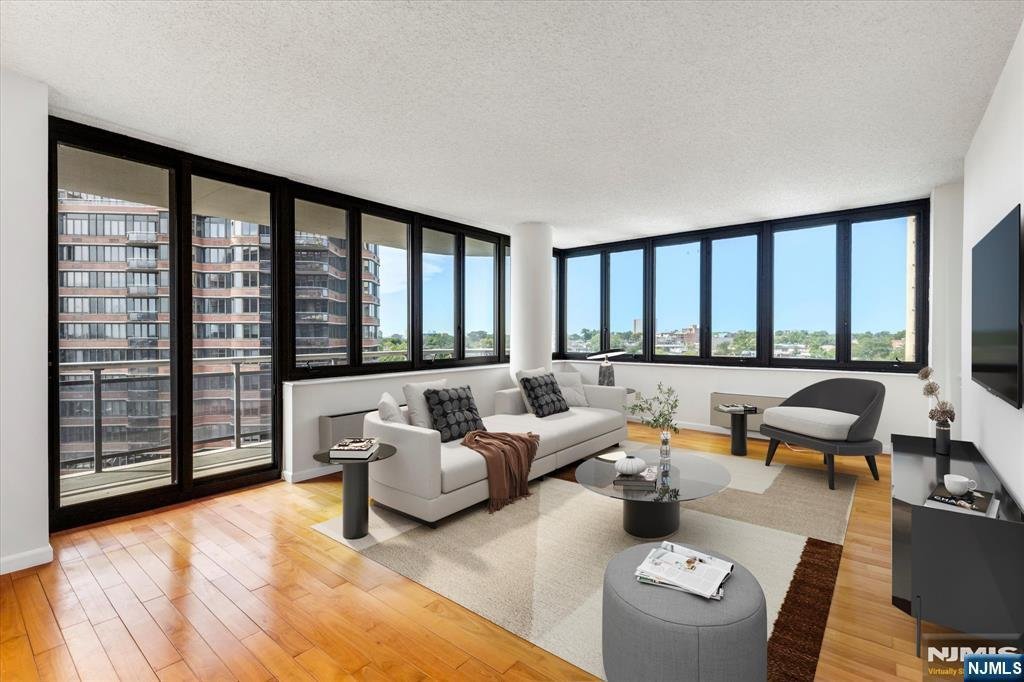 Indulge in luxury living with this breathtaking high-rise residence on the Palisades! Located in the highly sought-after The Carlyle, this is a south unit facing with direct NYC views. The interior boasts spaciousness and walk-in closets, 9-foot ceilings. Experience the epitome of full-service luxury living with a 24-hour doorman, valet parking, pool, exercise room, library lounge, children's playroom, and playground. With proximity to NY transportation, this sunny and bright residence invites you to embrace a lifestyle of comfort and sophistication. Don't miss the chance to call this place home! The hardwood floors is being sold AS-IS.
