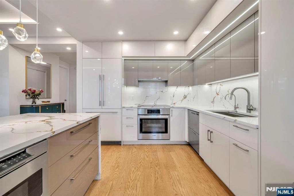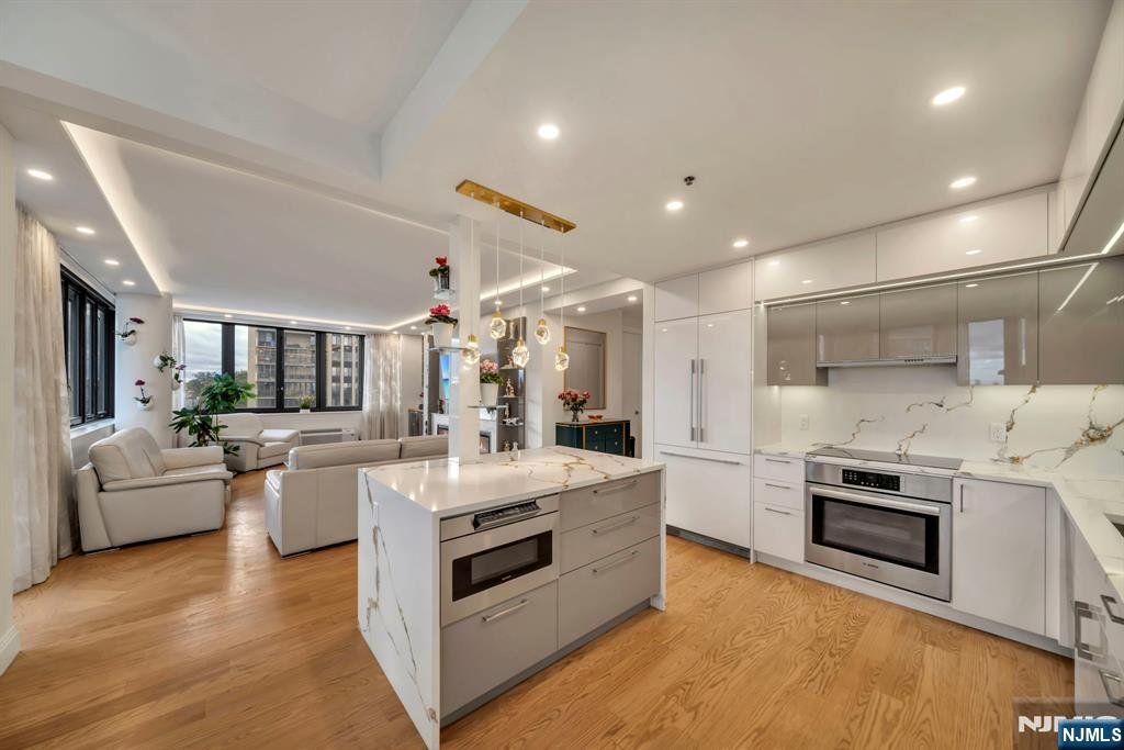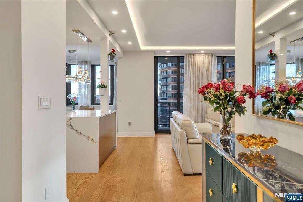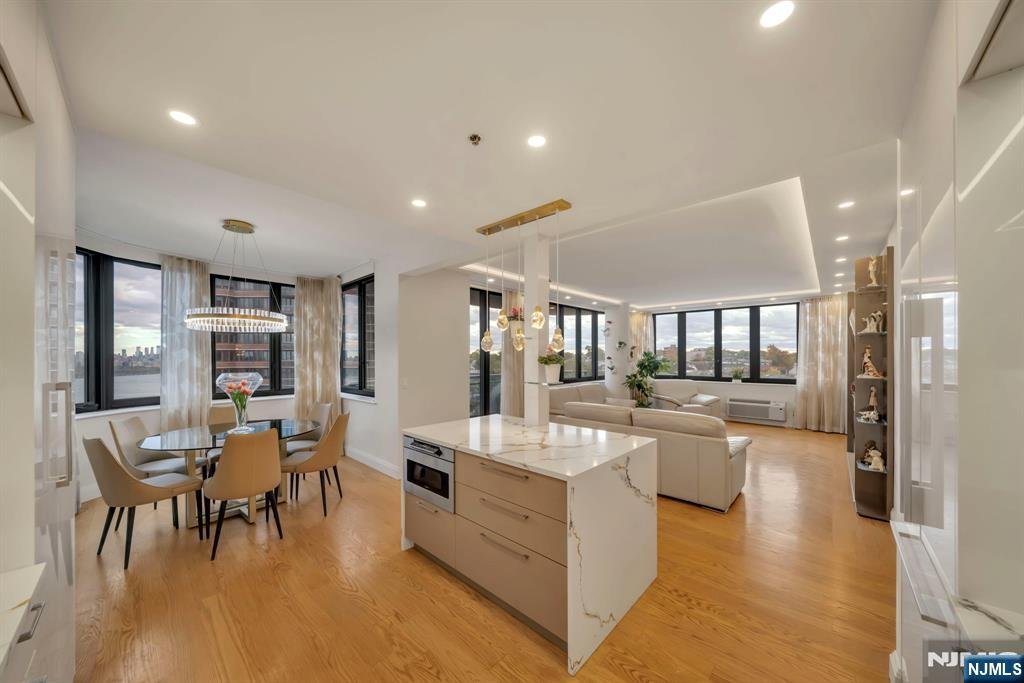 Experience the pinnacle of luxury at Carlyle Towers, Cliffside Parkââ¬â¢s premier full-service condominium, where exquisitely renovated 2-bedroom, 2.5-bath residences are rarely available. This stunning, sun-filled condo was fully renovated in 2024 to offer a sophisticated, modern lifestyle with breathtaking views of the Hudson River and Manhattan skyline. Luxury is in every detail. Exquisite craftsmanship is evident throughout, with thoughtful touches like custom lighting, a striking fireplace, high-end built-ins, custom wood floors, designer accent wallpaper and sleek cove illumination. The chefââ¬â¢s kitchen features top-tier appliances, integrated wine storage, and refined cabinetryââ¬âperfect for everyday living and entertaining. The expansive primary suite offers a serene retreat with custom closets and a spa-inspired bath featuring radiant heated floors, dual vanities and a smart toilet. Every comfort has been considered, including motorized blinds, custom modern draperies and new Trane HVAC units. From your private balcony, enjoy a front-row panorama of the glittering Manhattan skyline. A home of this caliber and design has simply never been delivered at Carlyle Towers. Experience incredible amenities, including a 24-hour doorman, outdoor and indoor valet parking, huge pool, fitness center, childrenââ¬â¢s playroom, library, party room, and proximity to numerous dining options, waterfront parks and NYC transit. Owner holds an NJ real estate broker license.