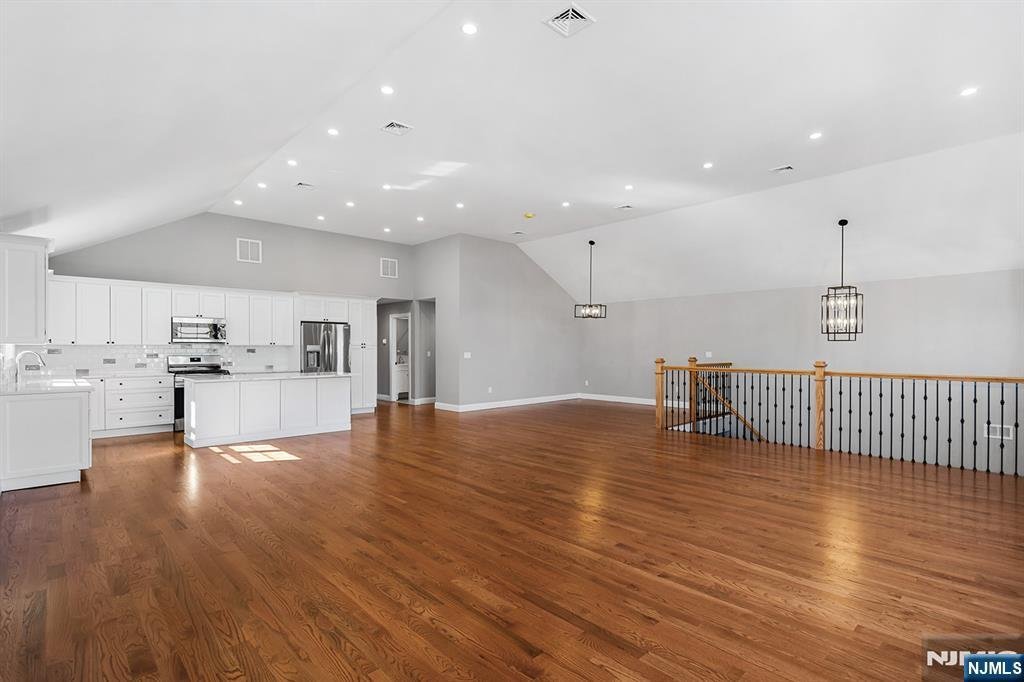 NEW CONSTRUCTION & PRICE REDUCED! Escape the confines of city life for suburban peace and quiet. Incredible, 4300+ sq. ft. 2 fam. home on a huge lot located on a great residential street, 2 blks from bus trans. to NYC and 15min. to the GW bridge, 20 min. to Newark airport. Enter the 2 story entry foyer w/4 ft. red oak staircase w/iron balusters. The OPEN flr plan w/the 13' vaulted ceiling will amaze & presents a true GREAT ROOM, (LR, FDR, KIT) measuring (33'9 x 34) or1122 sq. ft of living spc as ceiling makes it feel even larger. State of the art Kitchen w/cntr island, Shaker cabinets, quartz counters, SS appl. pkg., ballroom size FDR, all with 3/4 Red Oak Hdwd. flrs thru-out the entire main flr. MBR (19'4 x 17'2) w/MBTH w/6ft vanity w/dbl sinks; huge WIC closet. BR (14'x12') with O/S dbl clst & BR (12'x12'6) w/WI clst. Gst CT Bath w/sot. main flr topped off by huge pantry & private lndry rm. The ground level offers more space for owner with Fam. Rm. (16'9 x 19'11) w/comm. grade vinyl plnk floors & sgd. to paver patio' and a Pwdr rm. Amenities: High Eff gas HA Heat; CAC; tankless water htr; 25' x 30' paver drvwy. w/Belgium blk; 50' x 85' yd enclsd by premium 6' high vinyl privacy fence. The 1 BR ground level apartment is 800+sq.ft. w/open concept living space (LR, DA, KIT), FCTB, w/bonus extras; Lg. BR Laundry Rm. and gar. pkg. ALL EXTRAS BRING min. $2500/MO. INCOME (approx). *LIFETIME Timberline roof & Bldr.10 yr. Home Warranty. HUGE YD AFFORDS POOL + Room for activities.