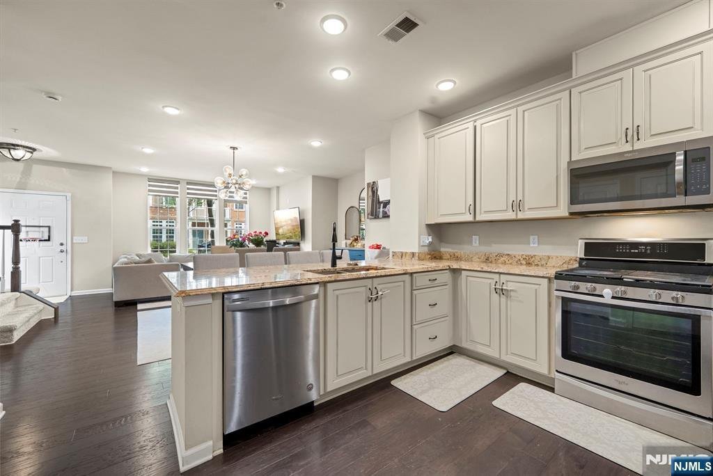 A spacious end unit townhome in Liberty Square is available for IMMEDIATE move-in ! This bright and airy home features an open floor plan with a modern kitchen equipped with custom white cabinets, granite countertops, stainless steel appliances, and an upgraded faucet. The main level includes a sun-filled living room, a dining area, a full bath with a standing shower, and direct access to an attached 1-car garage plus a 1-car driveway. Upstairs, you'll find an impressive primary suite with a walk-in closet and private bath with a shower stall, along with a guest bedroom, another full bath, and a dedicated laundry/utility room. Enjoy community parks just outside your door, and take advantage of the convenient access to NJ Transit trains and buses for an easy NYC commute, as well as nearby amenities like a wine store and coffee shop.