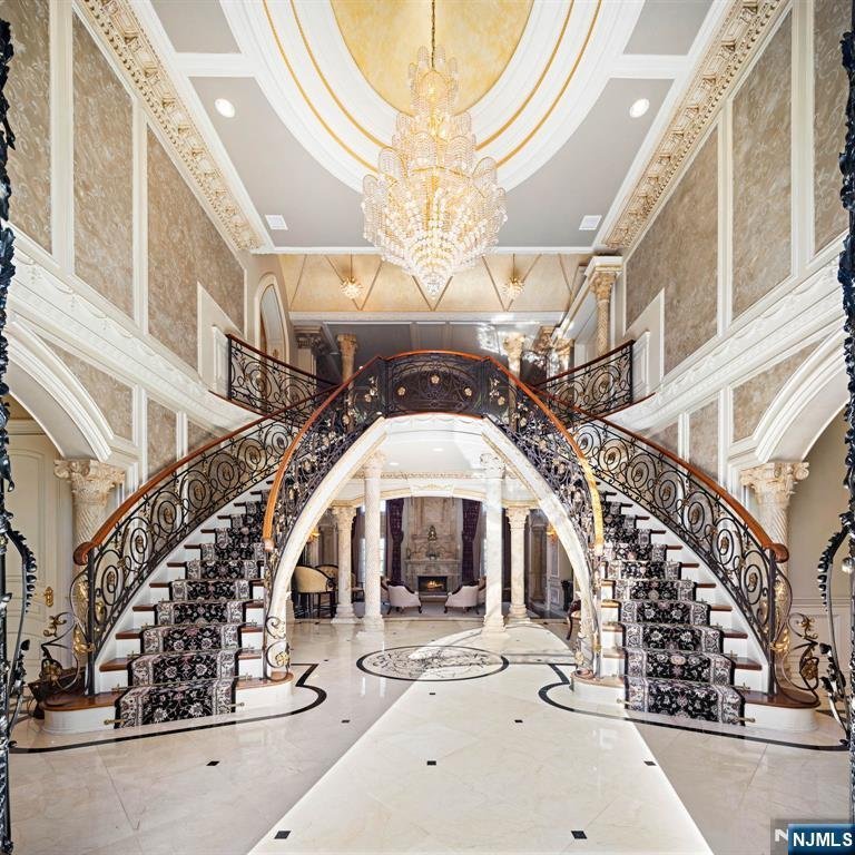 Set on one of the most sought after streets in northeastern Bergen County, this 12,000 square foot mansion abounds in luxury. Designed by premier architect, Zampolin & Associates, no detail has been overlooked. With east/west exposure, the home is flooded with beautiful sunrise and sunset light. Upper and lower floors open to terraces that extend the full length of the home, perfect for sunset soirees. A dramatic double staircase showcases the marble entrance with soaring 22 foot ceilings. The expansive kitchen will inspire your inner chef, while the formal living room's built-in bar is ideal for cocktails. Relax by the fireplace, or retreat to the sumptuous primary suite with its own fireplace, balcony, and sitting room. Seven additional bedroom suites, including one on the main floor offer ample accommodations. On the lower level, enjoy a movie in the theater or a game of squash on the indoor court. Additional features include an elevator to all three floors, hand-carved marble, heated floors, a serene natural pond, gazebo, summer kitchen, French doors throughout, and so much more. This home is truly an entertainer's dream and a must see. Call Annitsa @ 201-406-3650 for more information.