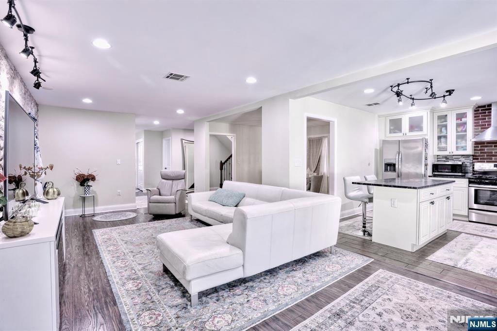Beautiful 6 year young home built on existing foundation located in North Arlington. Open Floor Plan, spacious home with 5 Bedrooms & 3.1 baths. The first floor welcomes you with an open floor plan. With entry foyer, living room with accent wall, kitchen with central island, formal dining room, bedroom, half bath and door to backyard. The second floor features a large primary bedroom with vaulted lighted ceilings, 2 walk in closets and a large ensuite primary bath with 2 separate sinks & skylight. Second floor also features 3 additional spacious bedrooms, full bath, laundry, multiple linen closets and pull down stairs to attic. Basement is full & finished with an entertainment room, full bath, additional laundry hookups & 1 car garage. Backyard is fully fenced in with jacuzzi tub & sun setter awning. Additional features include: hardwood floors on 1st floor & bamboo flooring on 2nd floor. Plenty of storage, 2 car parking in driveway, 2 zone ac & heating, recessed lighting. Easy commute to NYC with easy access to highways & buses. Close to schools & shopping.
