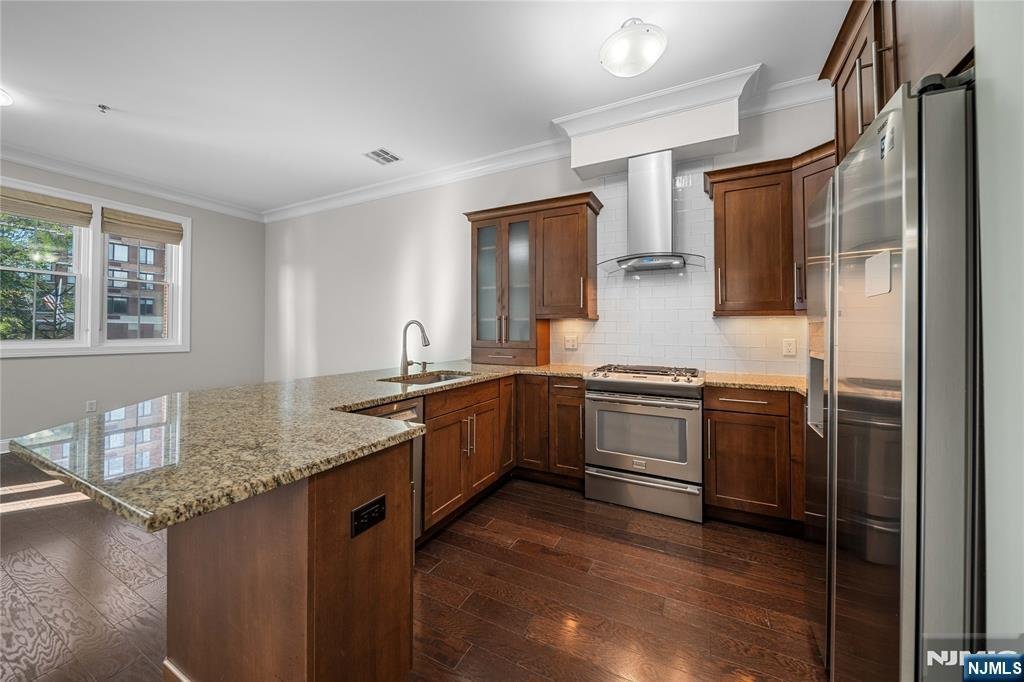 The Chen Agency(201-346-8888) represents: Welcome to Ridgeview on the Palisades — a premier boutique townhome community in the heart of Fort Lee! This modern residence, built in the 2010s, offers 3 spacious bedrooms, 3 full baths, soaring 10-foot ceilings, oak hardwood floors, elegant crown molding, and an open floor plan. The main level features a living and dining area, a gourmet kitchen with stainless steel appliances and granite countertops, a bedroom, and a full bath. Upstairs, the primary suite boasts a spa-like bath with a double vanity, a whirlpool tub, a separate shower, and marble finishes. A second ensuite bedroom and a convenient laundry room complete the upper level. Enjoy 2 designated garage and outdoor parking spaces, plus proximity to parks along the Hudson waterfront, fine dining, shopping, and easy access to NYC transportation. Luxury, location, and lifestyle — all in one exceptional Fort Lee home. It won't be on the market for long- don't miss out! For a private showing, please contact Sophie at 201-281-5593 or Jacob at 201-888-7979.