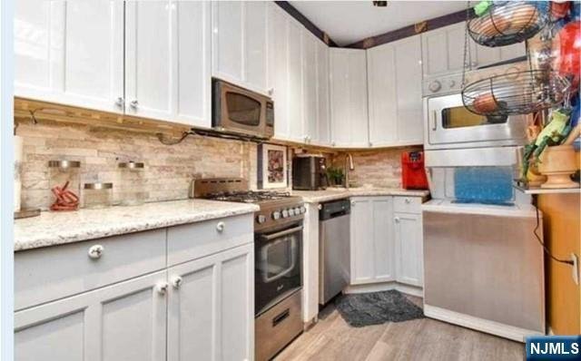Spacious (825 SF) one bedroom apartment located in Englewood's East Hill. Featuring a large living room big enough to have a dining area. Recently updated kitchen, beautiful silver appliances andquartz countertop, all hardwood floor, and convenience of washer and dryer in the unit. Large bedroom with a good-sized walk-in closet and a nice bathroom. Additional shared storage space in the basement. This apartment is surrounded by a gorgeous English courtyard, adding a serene and picturesque quality to your daily life. Water and heating are included in the rent. Tenant only pays cooking gas and electricity. Plenty of street parking and one car detached garage at $50 per month depending on the availability. A walk to downtown shopping, restaurants, cultural centers, and NYC transportation.