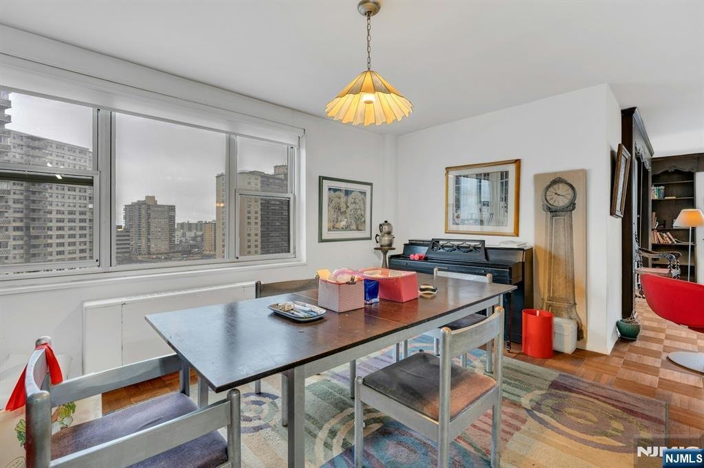 Fabulous, corner 2BR/2Bath deluxe condo is available for your next new home. Kitchen has been recently renovated and has stainless steel appliances and a desk space to work/eat from. Formal dining room is perfect for family gatherings. Ample living room faces east and has great light. Enclosed terrace, grandfathered in by the condo association, off of living room provides bonus space to enjoy and a private place to sit and watch the clouds pass by. Bedrooms are generous with plenty of closet space. Guest bathroom has a shower over tub, the main bathroom has a stall shower. Hardwood parquet floors throughout. Med South has 24/7 concierge/security. Community room, outdoor pools and playground. Athletic courts and seating area offering something for everyone. Parking assigned after closing by management office, $85/$75/$65 per month per car. Choice of Verizon or Spectrum for internet service. Close to GWB and major highway access. Near to Fort Lee's restaurant scene. Great location for your next home !!!