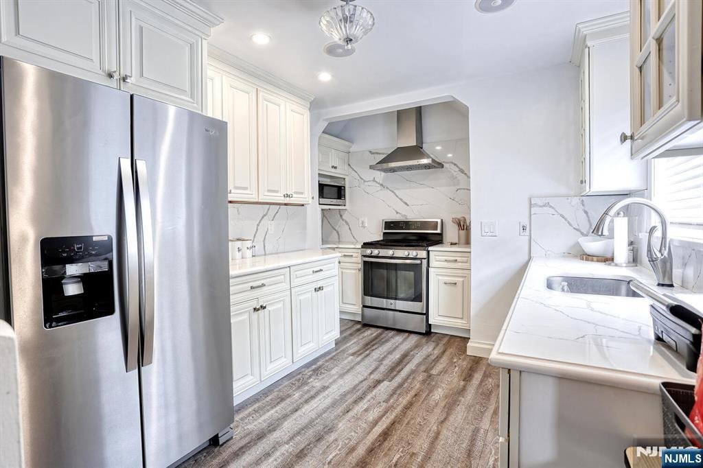 This beautifully updated Cape Cod home is located on a quiet desirable street in "The Friendly Town" of Bergenfield. The front manicured lawn leads to a welcoming entrance featuring hardwood floors, an updated kitchen, modern finishes, 2 fireplaces, 3 bedrooms, 2 full baths and a semi finished basement with a half bath. The fenced backyard is just perfect for a private retreat or backyard bbq under the covered patio. The sprinkler system makes keeping the lawn healthy a breeze and there is also an 8x8 shed available for storage or an extra get away space. A garage, ample driveway, proximity to restaurants, shopping, houses of worship, parks and NYC transportation, make this the perfect location for commuters and anyone looking for the suburban life that is only 15-20 mins. away from the GWB.