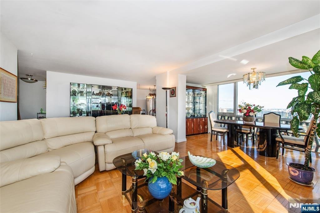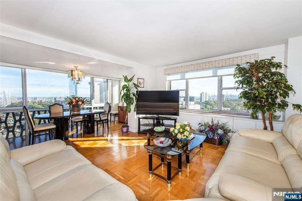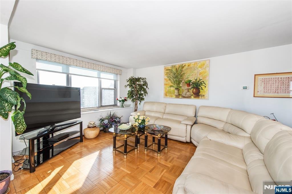 Southeast-facing, spacious 3-bedroom, 2-bath apartment with stunning NYC views from every room. This high-floor residence features a primary ensuite with a walk-in closet, two additional bedrooms, and a full bathroom. The formal dining room, generous living room offer ample space for entertaining. The kitchen is equipped with premium appliances, including a Wolf stove with BBQ grill, butcher block countertop, wine fridge, and refrigerator. Sizeable hallway closets. HOA fees include real estate taxes, heat, hot and cold water, and access to luxury amenities-including 24-hour concierge, pool,fitness center, and on-site parking. Ideally located in the heart of Fort Leeââ¬âjust a short walk to NYC buses, restaurants, and the Fort Lee Library. Sale is subject to Co-op Board approval.