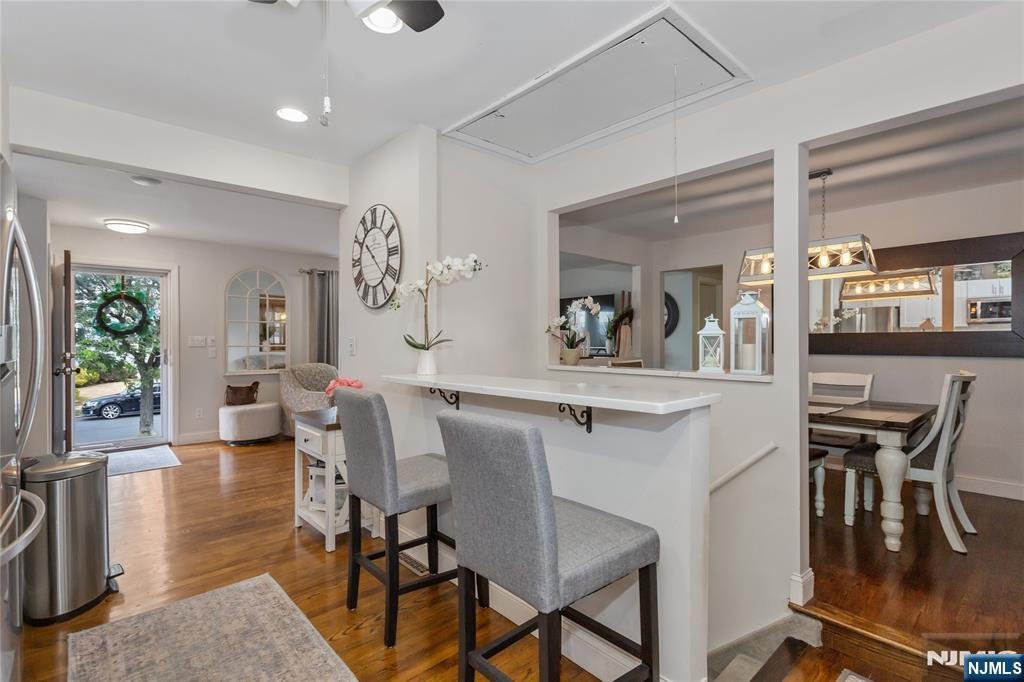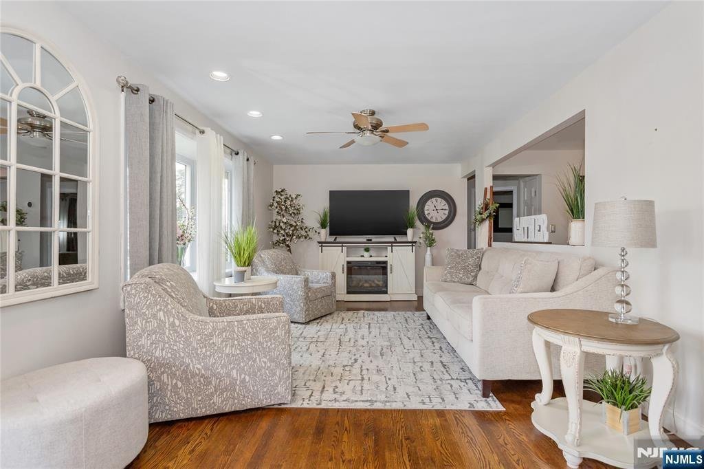 Welcome to this beautifully maintained ranch-style home that blends charm, comfort, and modern updates in Saddle Brook. Step into a spacious, sun-filled living and dining area with a large picture window and gleaming hardwood floors. The eat-in kitchen has been completely redone offering both beauty and functionality. Enjoy generously sized bedrooms and fresh paint throughout the home. The main bathroom is warm and inviting, enhanced by a heated ceramic floor. Downstairs, youââ¬â¢ll find a fantastic finished basement with a wet bar, a cozy electric fireplace, and a full bathroomââ¬âperfect for entertaining or relaxing. Step outside to a large covered patio ââ¬â ideal for gatherings or peaceful evenings. The fully fenced yard and 2-car garage with driveway for up to 6 cars provides convenience and peace of mind. Additional highlights include solar panels, central A/C, a newer hot water tank, and ground sprinkler system. This home truly has it allââ¬âdonââ¬â¢t miss your chance to make it yours!