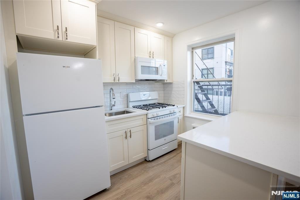 Welcome to a beautifully renovated condo apartment on the second floor that blends modern upgrades with timeless charm. Step into a bright, open-concept living space featuring fresh paint, gleaming hardwood floors, and a brand-new breakfast bar perfect for casual dining or entertaining. The kitchen has been completely remodeled, showcasing premium fixtures, faucets, cabinets, subway-tile backsplash, new Whirlpool refrigerator, modern gas stove, and built-in microwave. Thebathroom features elegant marble-look tile and a luxurious standing shower with matte-black finishes. Located on a quiet tree-lined street just moments from Main Street shops, dining, and NYC transportation, this home offers the perfect mix of style, comfort, and convenience. Highlights: Recently renovated kitchen with premium finishes New refrigerator and modern appliances Freshly painted throughout Polished hardwood floors Brand-new breakfast bar Stunning bathroom with walk-in shower Close to bus lines, parks, and schools Optional garage parking available for $150/month.