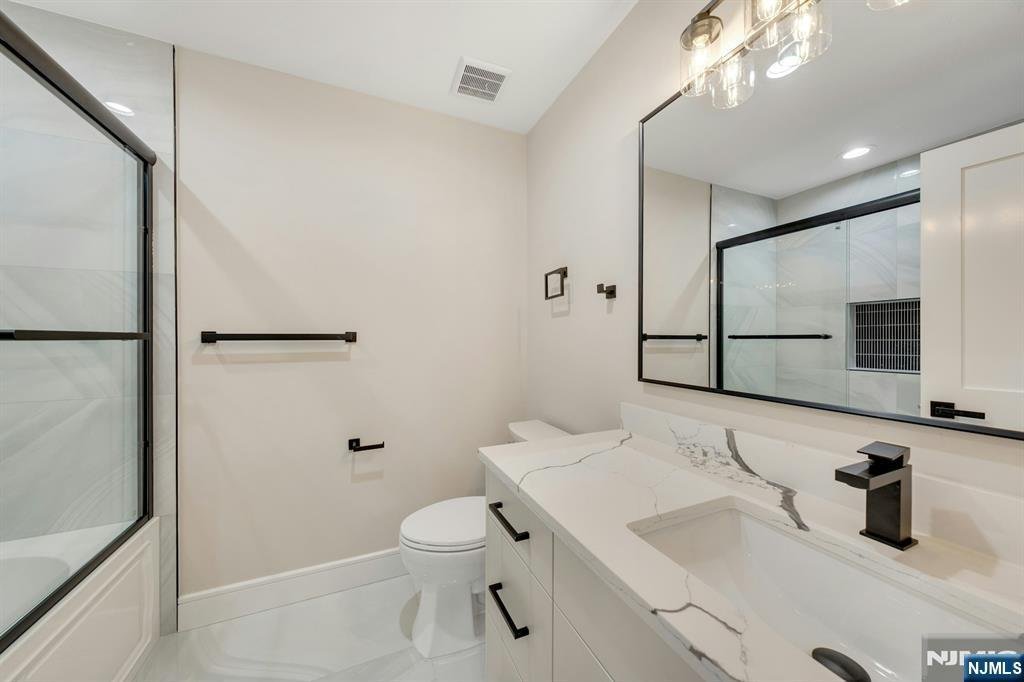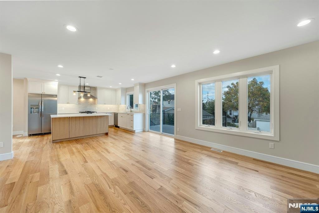 Brand new East-facing 4-bedroom, 3 full bath townhouse/duplex style condo with NO Maintenance fees! This quality-built home measures approx 2,400 sq ft (plus an additional 1,000 sq ft on ground level). Living room, dining room, den and separate family room combined with an open concept kitchen with custom cabinets, quartz tops with tiled backsplash, stainless steel appliances, which include stove, built-in microwave, dishwasher, and refrigerator with ice maker/water dispenser. The family room has an electric fireplace and sliders to 10' x 15' composite deck overlooking a deep yard. 2nd floor features 4 bedrooms, laundry closet with washer & dryer & 2 full baths. Master bedroom with 2 walk-in closets and private bathroom with shower stall. 2 gas forced air heating & air conditioning systems, gas tankless water heater, security camera system, hardwood floors on 1st & 2nd floor, 2nd floor pre-wired for house router. Ground level has access to the garage and walkout. 150 amp electric panel. Built in 1-car garage with a door opener, the driveway can accommodate a few cars. Lovely landscaped property. Located in a flood zone, all finished areas are above the flood elevation line, and flood insurance is quoted at $1255 per year! 2 blocks to NJ Transit bus stop #160 to NYC Bus Terminal in less than 30 minutes on average! Includes a 10-year new home warranty!