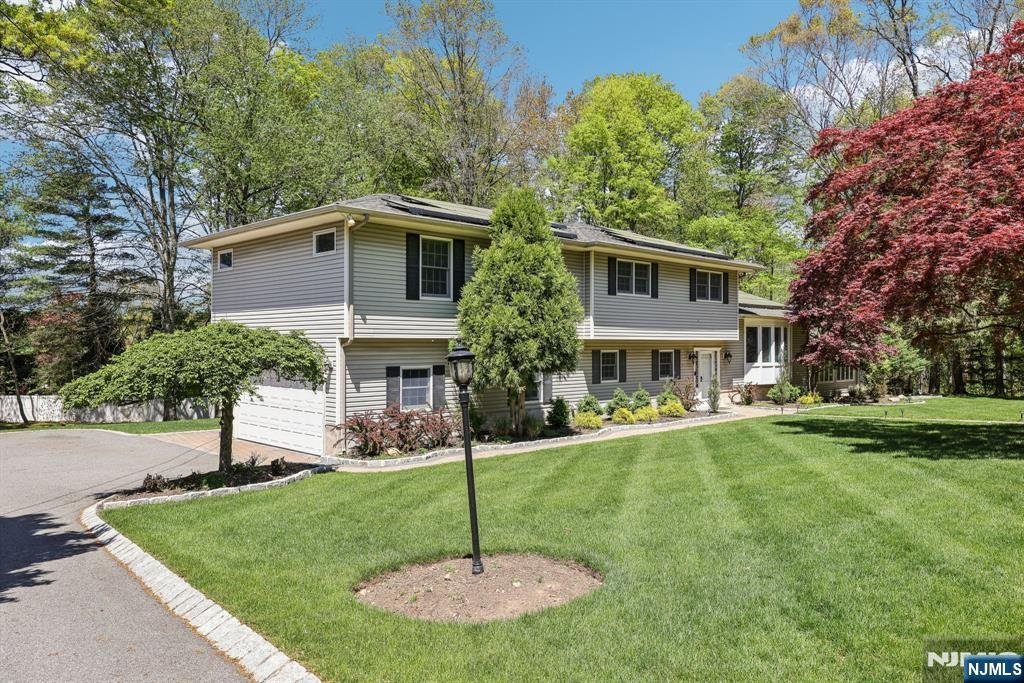Located on a quiet cul-de-sac, this light, bright expanded split level home offers 4 spacious bedrooms, 4 full and 1 half baths, and a 2-car garage on a .66 acre lot. Each bedroom has its own private bath with the 4th bedroom on the main level, featuring an en-suite bath. The gourmet kitchen, with center island seating for 6, opens to a more formal dining area. Granite counters, custom wood maple cabinets, tiled backsplash, vaulted ceilings, and stainless steel appliances will captivate any chef. Sliders from the kitchen open to a large maintenance-free deck overlooking the back yard. Hardwood floors are present in most areas. A home office off is located off the entry foyer. The basement includes a large recreation room with a pool table, and a bonus room that could be an exercise room, media room, or an additional office. The family room on the main level has a wood-burning fireplace and windows overlooking a private paver patio. Don't miss this gem in Wyckoff, a town with great schools, shopping and commuting options to NYC.