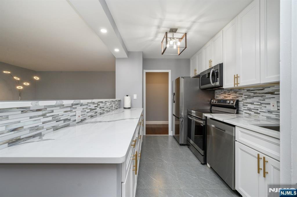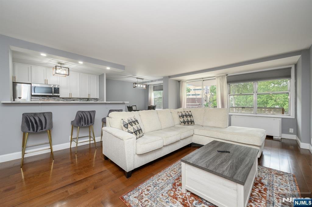 Executive House in bustling Hackensack premieres this beautiful 2 Bed 2 Bath Condo with Master Suite and private deck, sure to impress! Well maintained with plenty of modern upgrades in a prime commuter location, just pack your bags and move right in. This fourth floor unit offers an open layout for seamless living and entertaining, with generous room sizes, hardwood floors that shine, plenty of natural light all through, and a crisp cooling palette that is easy to customize. Gorgeous eat-in-kitchen offers sleek SS appliances, upgraded quartz counters, ample cabinet storage, delightful breakfast bar, and opens to the lovely dining area. Spacious living room holds sliders to your own private deck, great for al fresco dining or enjoying your morning coffee. Down the hall, the main full bath, along with 2 generous bedrooms with ample closets, inc the Master Suite. MBR boasts its own full ensuite bath with stall shower and walk-in closet. Addtl features inc elevator access, a luxe lobby with 24 hr. doorman, conference room with kitchen facilities, an outdoor pool, and shared laundry room in the basement. HOA fee covers all utilities, an owned outdoor parking space, the pool, and a separate lockable storage bin. All conveniently located to shopping, dining, parks, schools, Hackensack Meridian hospital, major roads, the the bus line for an easy commute. Don't miss out! *Coming Soon - Showings begin Friday 10/3*
