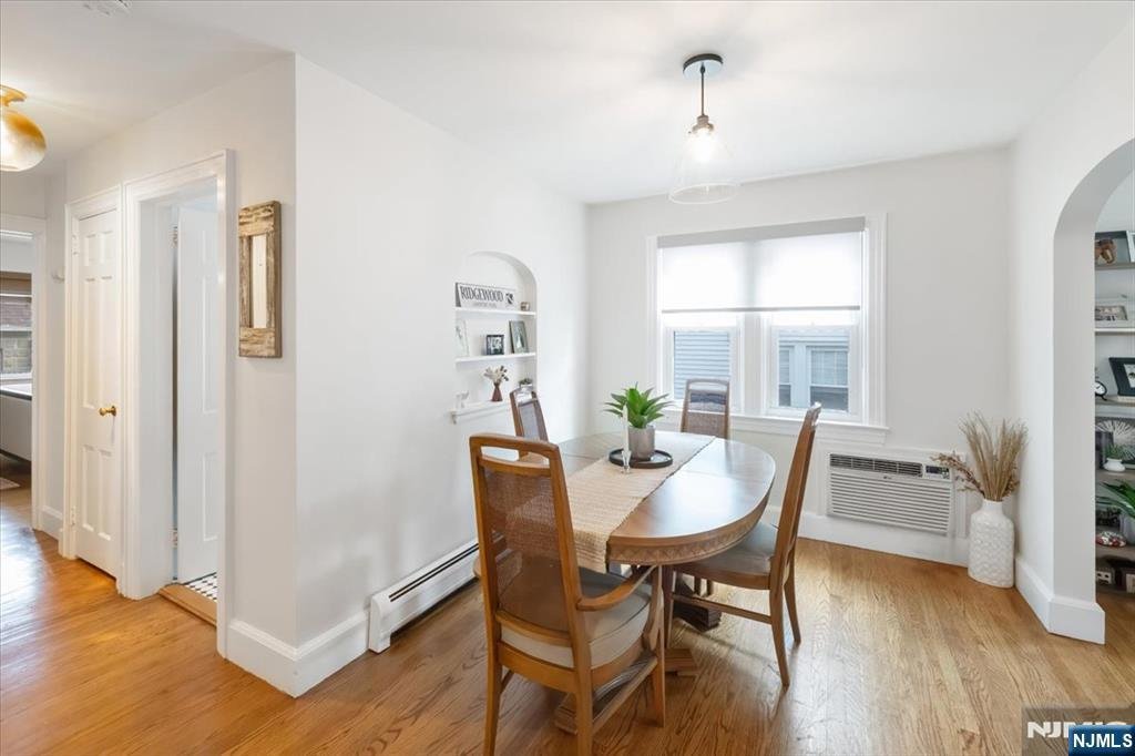 Apartment is available as of November 1st. Welcome to this beautiful and spacious 1st flr apartment in a charming 2-family home perfectly situated in one of Ridgewood's most desirable neighborhoods on a quiet tree lined street. The heart of this home features a large bright & open Living rm, dining rm & kitchen that flow seamlessly together creating the perfect space for both everyday living and entertaining. The updated kitchen was opened up to the living rm recently and includes beautiful new quartz countertops, stainless steel appliances and a counter to add some seating. This well maintained residence has 2 good size bedrooms & 2 full baths. One of the baths which is connected to a bedroom is being added right now and will be done soon. Beautiful gleaming hardwood floors throughout. Additional highlights include a large portion of the basement with laundry and storage, convenient parking for 2 cars in driveway & a one car garage. With it's prime location you can walk to Ridgewood's beautiful historic downtown with easy access to train/bus to NYC, great restaurants/stores and the Van Neste Square Park where there are many activities & events. Ridgewood is known for it's excellent schools and the high school is in walking distance from the home. Don't miss this opportunity to live in a well-maintained home in one of Bergen County's finest communities!!