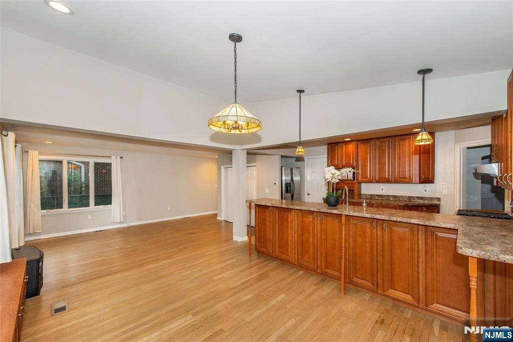 This spacious 10-room 5 bedroom home is conveniently located with room for all. The Living room has a wood-burning fireplace, a formal dining room, and an updated galley-style kitchen,. Step down to a sunken great room with a gas fireplace, and an extra dining area with/ sliders out to a patio. The first level also features one bedroom/guest room and a full bath. The second level features 4 bedrooms one being the master with a master bath. The main bath is also on the second level gas-forced air heat and 2 zone C/A. There is a built-in garage and side door entrance. Enjoy your inground Gunite pool in a secluded landscaped yard. Nearby travel routes are Rte.80 and Garden State Parkway., Rte. 46 and 17. One car garage with updated electric panel to coincide with the original panel in the basement.