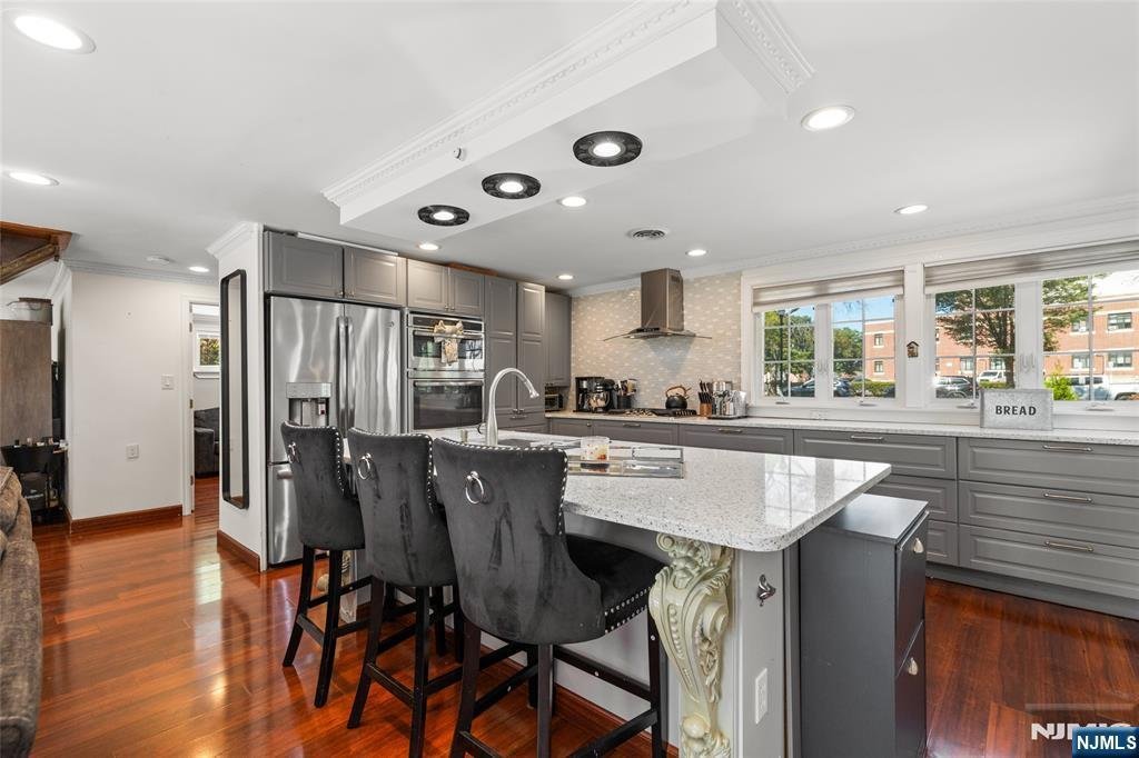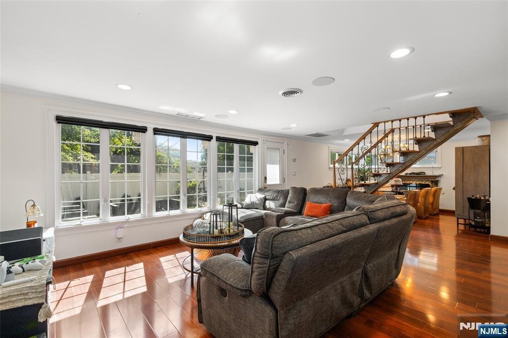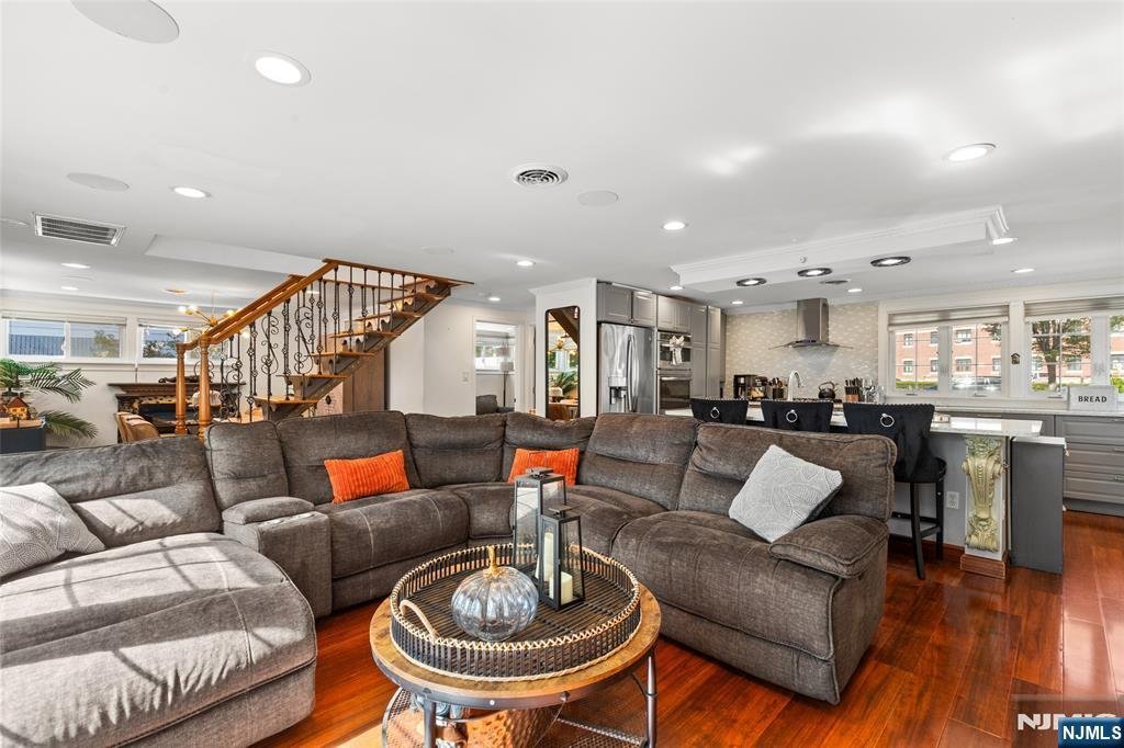 This beautifully renovated single-family home features 3 bedrooms and 2 full bathrooms. The interior was fully updated in 2019 with modern finishes, and in 2023 the roof and driveway were replaced, enhancing both style and functionality. The bright, open-concept living space includes a contemporary kitchen with sleek countertops, a large island, and ample storage, flowing seamlessly into the family and dining areas, all equipped with surround sound systems on the first floor and central air for year-round comfort. Three skylights fill the home with natural light, and the private backyard is fully fenced, perfect for relaxing or entertaining. The property offers an attached garage plus parking for up to four vehicles. Ideally located just a short distance from shops, restaurants, grocery stores, and with an express NYC bus right down the street, this home offers the perfect blend of convenience, modern amenities, and inviting style.