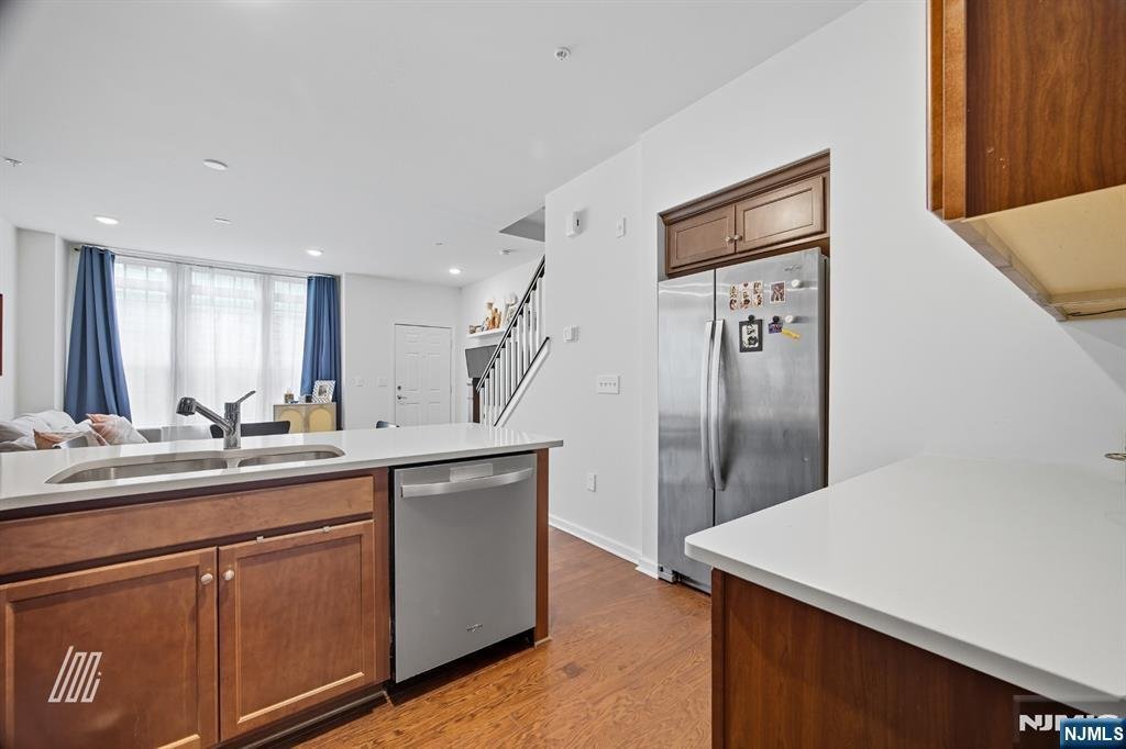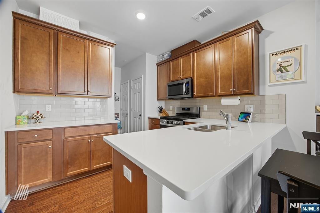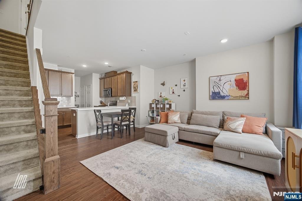 info@39arnolddrive.com // Welcome to this 2022-built townhome with a tax abatement program in place through December 31, 2027, located in the desirable Wesmont Station community. The home’s brick facade and covered entry lend curb appeal, while inside an open-concept main level greets you with natural light and wood floors. Enjoy cooking in the modern kitchen featuring stainless steel appliances, quartz counters, tile backsplash, gas range, microwave, and a breakfast bar that opens to the living and dining spaces for easy entertaining. A full bath with a shower sits just behind the kitchen, adding convenience. Upstairs, the primary suite includes a generous bedroom and walk-in closet, and the full bath with two sinks and tub/shower has doors to both the primary bedroom and hallway. A second bedroom and in-unit laundry complete the upper level. Outside, stroll along landscaped pathways to nearby playgrounds, dog park, and athletic fields. NJ Transit’s Wesmont Station is moments away for a quick commute to NYC, and local shops, eateries, and highways are nearby. With low-maintenance living and community amenities, this townhome delivers suburban comfort with urban accessibility. Additional highlights include central air, forced heat, an attached garage, and driveway. The neighborhood offers tot lots, athletic fields, and a dog park. Close to major highways, this home offers comfort and convenience. Enjoy shopping and dining options. Modern finishes throughout home.