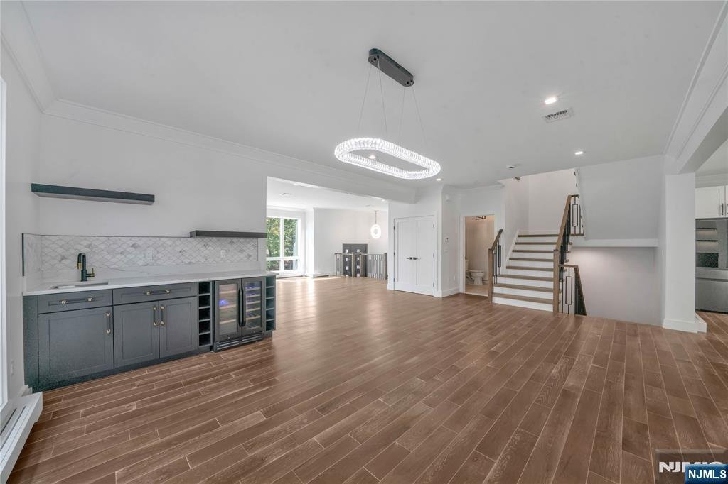 Welcome to 428 6th Street, an impressive oversized luxury townhouse perfectly positioned on a 75x100 lot in the heart of Palisades Park. Spanning over 4,600 sq. ft., this home offers soaring 9-foot ceilings on the main level and a thoughtfully designed open layout. The expansive living room transitions seamlessly into a formal dining room with built-in wet bar, ideal for entertaining. A cozy family room with fireplace adds warmth, while the chefââ¬â¢s kitchen is the true centerpiece, featuring a massive center island, custom cabinetry, and premium finishes. Sliding glass doors open to a private, enclosed backyard, perfect for outdoor enjoyment. Upstairs, the primary suite boasts two generous closets and a spa-inspired bathroom with double vanity, soaking tub, and glass-enclosed shower. Three additional bedrooms provide comfort and flexibility for family or guests. All bathrooms upstairs feature radiant heat. The lower level is designed for versatility, complete with a true two-car garage, spacious recreation room, an additional bedroom or home office, and a convenient half bath. Blending scale, luxury, and functionality, this exceptional residence presents a rare opportunity to enjoy oversized living in one of Palisades Parkââ¬â¢s most sought-after neighborhoods.