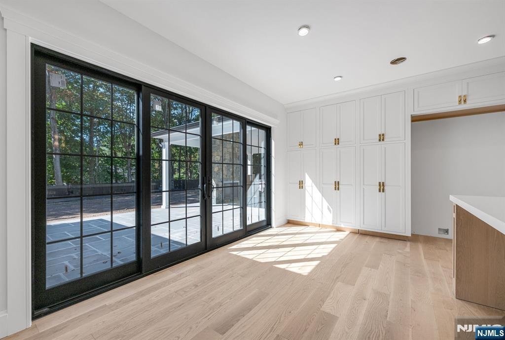 Stunning NEW construction Hampton style home located on the East Hill of Upper Saddle River is the epitome of luxury. This custom-built masterpiece by high end builder showcases 7,961 sq ft on 3 levels. Gorgeous exterior w/ covered front porch, sweeping roof lines & large level property. Enter to a 2 story EF w/ wide plank white oak floors, banquet size DR w/cstm clg, large LR w/panel walls. Dream designer kitchen w/ breakfast rm with all the amenities, custom island, high end appliances, built-in coffee bar, opens to outdoor living space w/raised 36' x18' bluestone patio w/outdoor kitch & FP. 2-story great rm w/ vaulted ceiling, custom beams & FP opens to patio. First fl BR, full bath, pantry, butler pantry, powder rm, & built-in mudroom area w/ access to 3-car garage w/ EV charger complete the 1st level. The second level offers 5 large BRs, 3 en-suite, 2 Jack & Jill, office, & laundry rm. The primary suite is a masterpiece w/ vaulted ceiling showcasing custom beams, FP, 2 WICs, & luxurious bath w/ oversized marble shower, dual vanity & soaking tub. The finished lower lvl offers a 7th BR, full bath, gym, theater, rec area, kitchen, & 2nd laundry rm. CAT5 cables all BRs, gym, theater, office, & great rm. Movie rm w/ 120 in. retractable acoustic weave screen, projector w/ wall speaker subwoofers & data tower. Security w/ 16 port w/ 9 cameras. Prewired for 6 Wifi hotspots. Wired speakers and dedicated amps to kitch, back patio & gym. 26 KW generator. Truly exceptional!