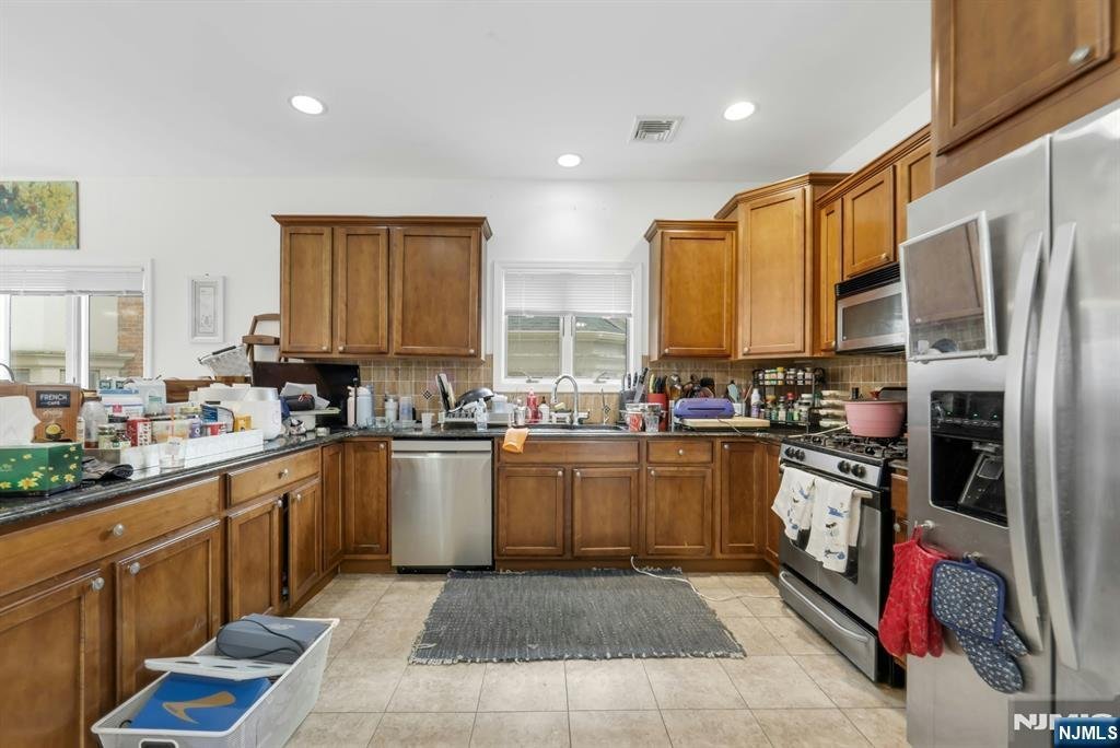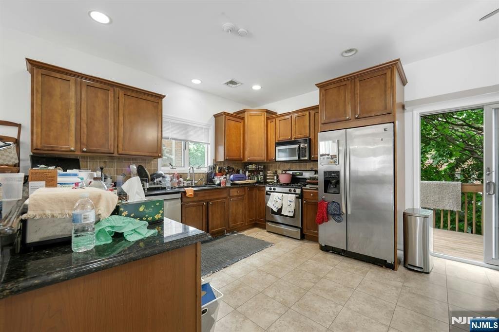 Beautiful Brick Duplex – 3 Bed, 3.5 Bath – Prime Location Near NYC Transit! Immaculate duplex featuring a bright, open layout with hardwood floors, and a spacious living/dining area. The kitchen boasts granite countertops, stainless steel appliances, lots of cabinetry and breakfast bar, The sliding door in the kitchen leads out to the deck. Large modern eat-in kitchen with granite counter tops, Upstairs offers a large master suite with, Jacuzzi tub, walk-in shower, and skylight, plus two additional bedrooms with high ceilings and a second-floor laundry. The finished basement with full bath, and separate entrance—ideal for guests or office use. Includes 2-car garage, central air, and is walkable to NYC bus, restaurants, and shops.