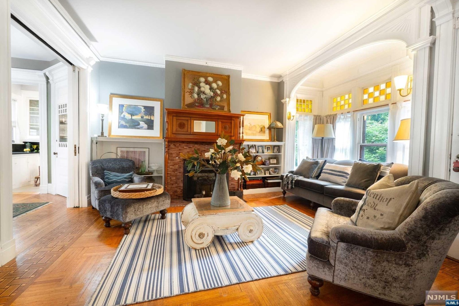 Beautiful Victorian home in the historical district of Magnolia Avenue. Custom stained glass windows & gleaming hardwood flooring throughout give this home timeless charm. Setback 103 ft from the avenue & lined w/ beautiful Japanese Maple trees, this home is both private & serene. The first floor bathroom & kitchen completely remodeled w/ new coffered ceilings & recessed lighting, new tile floors, & high end SS appliances. Fireplaces relined w/ solid flue. New lighting fixtures, sconces, & recessed lighting. Both bathrooms on second level remodeled w/ radiant heat. Primary bedroom comes complete wi/oversized wic, serene primary bath & restored working fireplace. Third level offers restored hardwood flooring, oversized rec room, as well as a kitchenette installed. The outside is just as charming, with massive yard, paved patio, gazebo with sitting area, & pickle ball court- can be transformed into volleyball court. Blue Ribbon School/ Easy access to NYC transportation