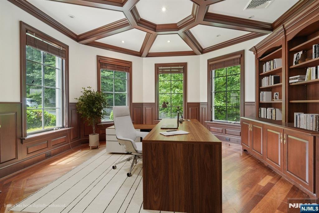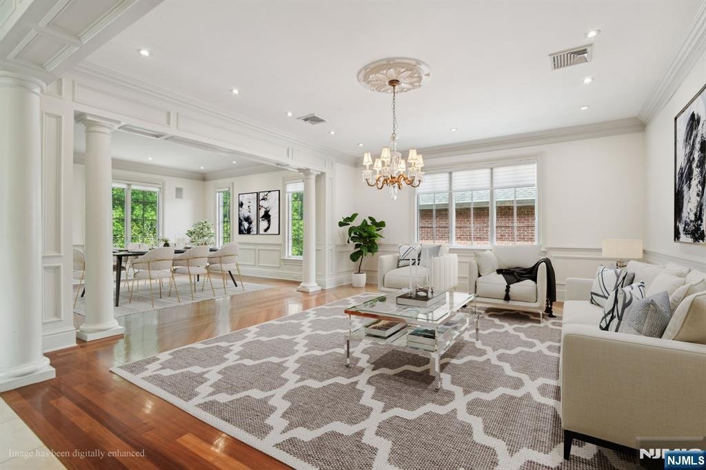 Beautiful 5BR, 4.5BA home set on a private cul-de-sac. As soon as you enter the home you can tell the craftsmanship and thought of detail that went into this home. The Brazilian cherrywood flooring, custom cabinetry and molding throughout. The sun drenched open flow offers the perfect entertaining space. Located just off the entry foyer is your formal living and dining space, home office, and a great room with a fireplace. Gourmet kitchen offers a suite of appliances - Sub-Zero refrigerator and wine fridge, Wolf ovens & 6-burner cooktop. Upstairs living quarters no details were spared. The grand primary suite offers coffered ceilings and a spa-like bathroom quipped with a jetted tub, plus 3 more spacious bedrooms. Thoughtful details such as heated flooring, electronics, rec room, gym, stone patio, private outdoor yard, proximity to Flat Rock Nature preserve, NYC, local shopping and restaurants make this home highly desirable!