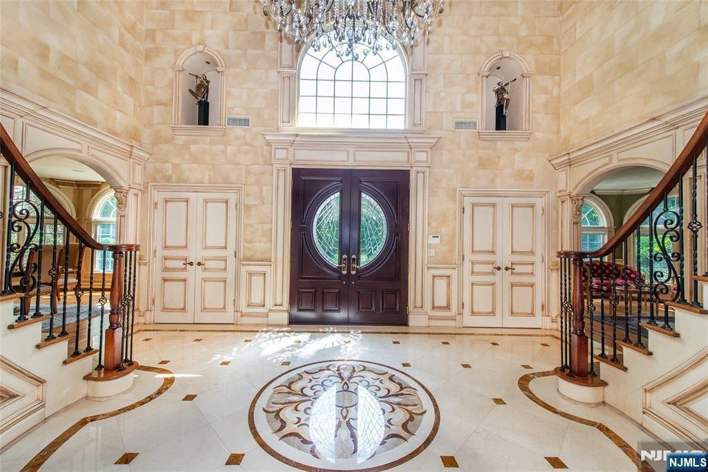 No detail overlooked and no expense spared, this opulent custom built home awaits its lucky new owner. Welcome to 6 Adams Road in the prestigious and highly sought-after Saddle River, New Jersey. Behind the gates stands this grand residence, perfectly nestled on 2 acres of lush land surrounded by your personal award-winning jungle oasis. Enter through the grand double doors and be greeted by a sweeping dual staircase that sets the stage for this palatial residence. The dramatic double-height Great Room wows with hand-painted murals and intricate wall finishes, while soaring windows frame enchanting views of your own private resort-style sanctuaryââ¬âwith lush landscaping, a cascading waterfall pool, and tranquil fish pond. The chefââ¬â¢s kitchen is a culinary masterpiece, outfitted with top-of-the-line appliances including Sub-Zero refrigerator, multiple Wolf ovens, dual Miele dishwashers, and two sinks for effortless entertaining. Custom cabinetry and designer finishes complete the space. Upstairs, five generously sized en-suite bedrooms provide comfort and privacy, with the palatial primary suite occupying its own wing, featuring a private sitting area and a spa-inspired bath that feels indulgent. The lower level is a haven for entertaining, boasting a full-sized gym, an eight-seat movie theater, a billiards room, and a temperature-controlled Tuscan-inspired wine cellar with storage for over 400 bottles.