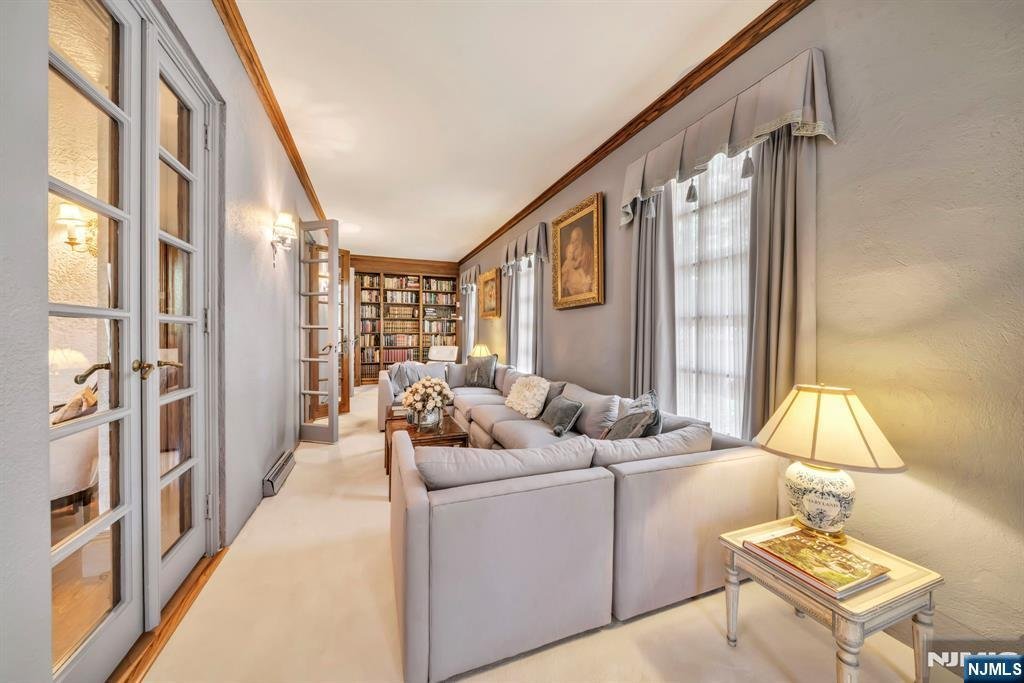 Built in 1927, this Spanish Colonial Revival estate offers 4,866 square feet of elegant living space on nearly half an acre in one of Glen Rockââ¬â¢s most distinguished residential settings. Defined by its mission tile roof, arched entries, and original millwork, the home blends historic character with expansive interiors suited for modern living. High ceilings enhance every level, beginning with a grand living room with fireplace, a sunlit family room, and a front sitting area enclosed by a series of large arched windows. The formal dining room is crowned with architecturally detailed coffered ceilings, while a library with built-ins provides a refined retreat. A versatile kitchen with pantry and a well-placed powder room complete the main level. Multiple exits lead outdoors to a private side courtyard and to a patterned-paver driveway that extends to the detached three-car garage. The upper level offers five bedrooms and two full baths, with the primary bedroom serving as a serene focal point for the floor. The finished lower level expands the living space with a recreation hall, media lounge, custom wine cellar, full bath, laundry, and ample storage. Landscaped grounds and extensive hardscaping unify the exterior and reinforce the estateââ¬â¢s architectural presence. This is a rare opportunity to own a residence of lasting quality and distinction in the heart of Glen Rock.