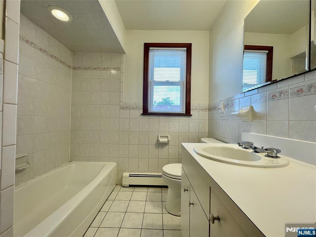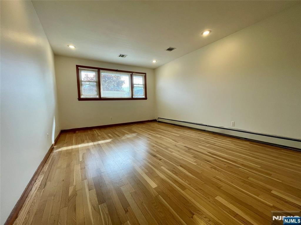 Beautiful and meticulous two bedroom, one full bath apartment with heat and hot water included! Second floor of a two family home features a spacious living room with recessed lighting, two good size bedrooms with closets and a large modern eat-in kitchen with a generous amount of cabinets, tile backsplash and ceiling fan. The full bathroom is light, bright and very clean! Highlights include: entire apt freshly painted, gorgeous and refinished hardwood floors that look brand new, central air and baseboard heat. No smoking of any kind, no pets of any breed. Tenant pays cooking gas and electric. One off street parking space in the driveway is optional for $100/month additional rent. Owner holds a NJ Real Estate License.