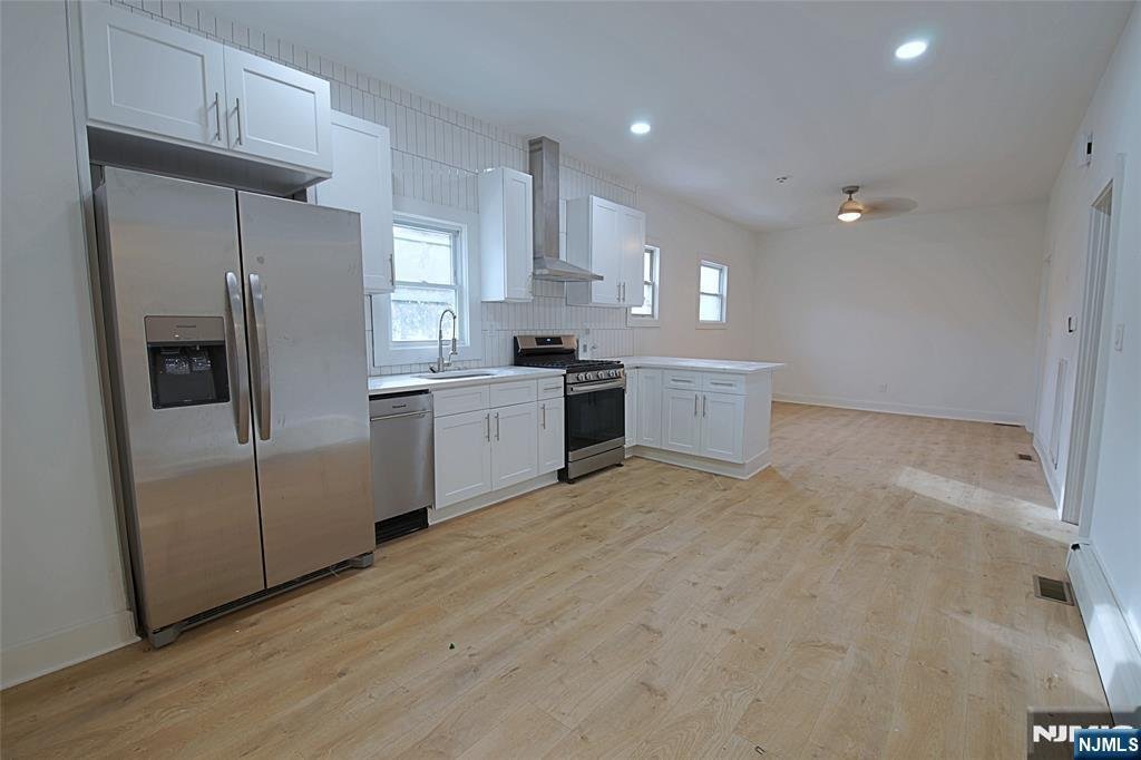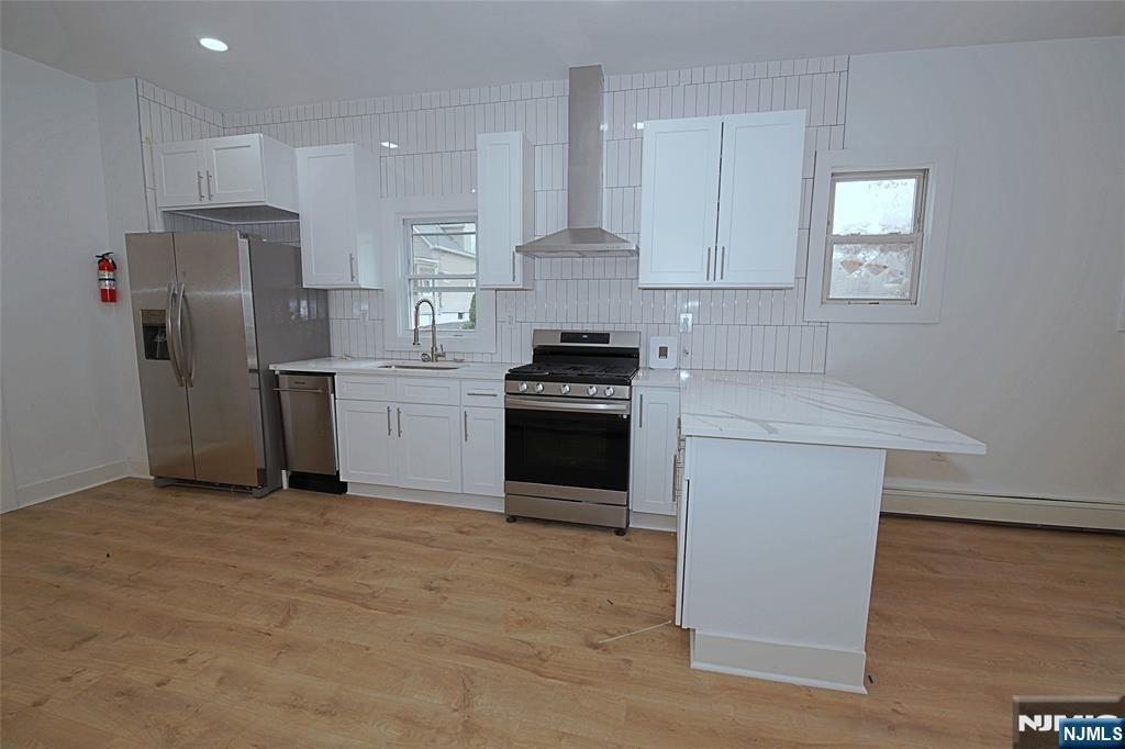 Beautifully renovated first-floor apartment in a two-family home located at the corner of Wessington Ave and Van Winkle Ave in Garfield. This bright and spacious unit features a brand-new kitchen with stainless steel appliances, modern cabinetry, and a large countertop that opens to the dining and living room area. Contemporary bathroom, in-unit dedicated laundry room with new washer and dryer, and two comfortable bedrooms. Central A/C. Front and rear entries with access to yard. Tenant responsible for all utilities. Situated in a quiet neighborhood with convenient access to shopping, schools, and public transportation. Both 1st and 2nd floor units are available. Lockbox located at the back door. Please text Listing Agent Charles Sohn (631-241-1888) for an appointment before showing.
