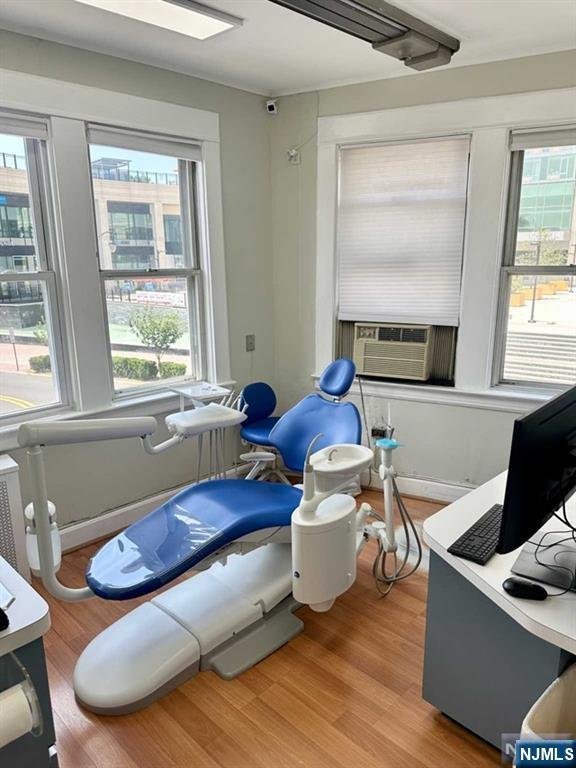 Commercial office/medical space for rent on the 2nd floor in central Cliffside Park location with high pedestrian and vehicle traffic ideal for a business. Unlimited possibilities for any type of business ranging from office to medical. Prior tenant was using space as a dental office. The space consists of a large waiting room, reception area, and 5 individual office suites plus 2 smaller rooms for storage/supplies, an updated half bathroom and 2 large storage closets. Corner property with entrance on Grant Avenue with signage on both Grant Avenue and Anderson Avenue for high exposure and visibility. Plenty of street parking. Tenant responsible for all utilities except for cold water. The space has lots of potential for various commercial uses. Available immediately.