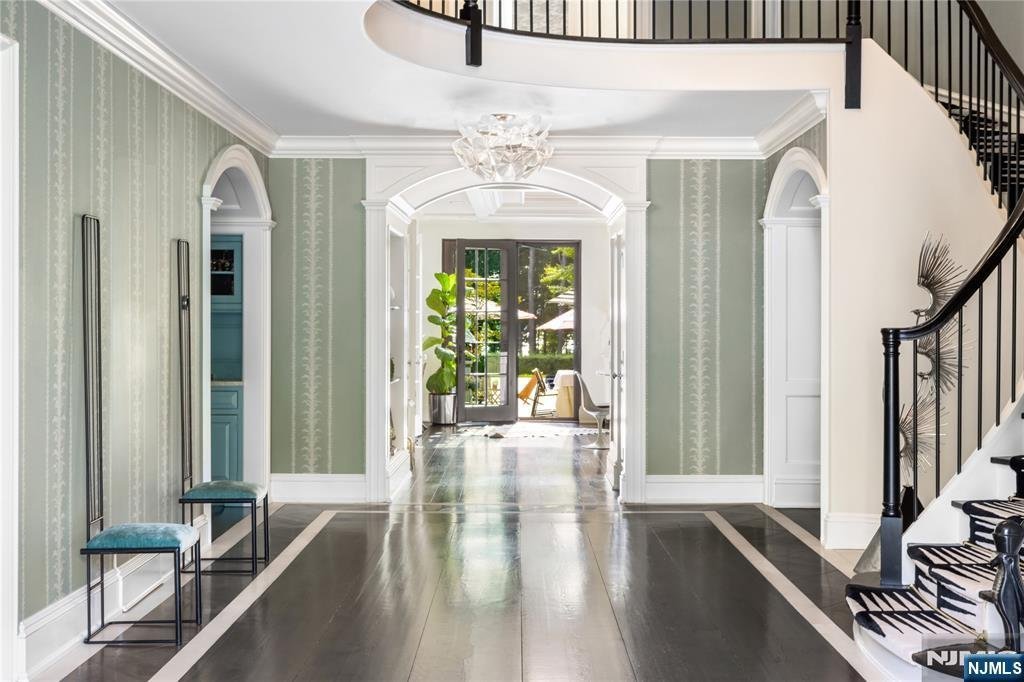 A timeless French-inspired estate set on two manicured acres in one of Old Tappan's most sought-after enclaves. Designed for modern living and entertaining, the home's flowing layout connects 11,000 sq. ft. of elegant interiors with resort-style outdoor spaces. A meticulous renovation, begun in 2014 and completed in 2016, introduced a stylish loft and an elegant primary closet, enhancing the home's blend of sophistication and comfort. At the center is a limestone terrace framing a 40-foot heated pool and spa, surrounded by mature evergreens for total privacy. The covered loggia with paneled ceiling, fireplace, and retractable drapery creates an outdoor living room for all seasons. Inside, the home combines timeless design with modern amenities, featuring custom finishes, radiant-heated floors, and smart-home integration throughout. The private primary suite offers dual marble baths, a vaulted dressing room with skylights and glass wardrobes; while a separate loft apartment with private entrance provides flexibility for guests, staff, or studio use. This listing includes the adjoining parcel at 11 Stokes Farm Rd, presenting a rare opportunity to own two neighboring lots together.