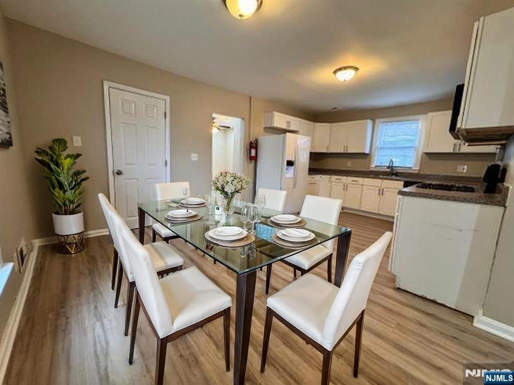 Nestled in the heart of Hackensack, this freestanding single-family home is ready for immediate move-in. With two off-street parking spaces and an inviting front porch. You are welcomed into the entry/foyer and the sundrenched living room. The large eat-in kitchen is big enough for entertaining and dining with a half bathroom and bedroom/office just off the kitchen. Upstairs are three additional bedrooms, one with a deck overlooking the fenced backyard. The upstairs is rounded out by a full updated bathroom. The unfinished basement has laundry, machines, and is perfect for storage and utilities. Close to schools, transportation, and downtown Hackensack.