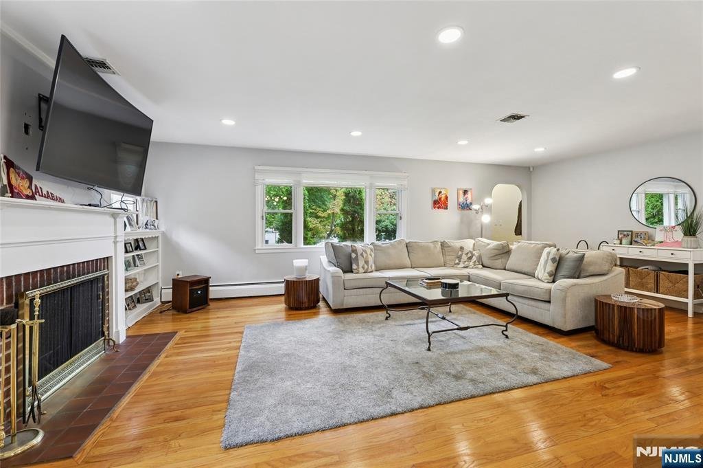 Welcome home! This charming ranch-style Tenafly rental boasts a prime location near top schools and NYC transportation, with great curb appeal, natural light, and an open floor plan featuring living and family rooms with large windows. Beautiful hardwood floors throughout, with modern finishes and timeless charm. A finished basement offers an office, full bath, laundry room, and a separate junior suite with a kitchenette, full bath, and private outdoor access. The primary suite is especially dreamy with skylights, high ceilings, ample closets, and a spa-like bath, while all additional bedrooms share the same modern feel with bright light and spacious layouts. Enjoy a private backyard with a large patioââ¬âperfect for entertaining and summer fun. This gem wonââ¬â¢t last long! Lawn care included in rent.