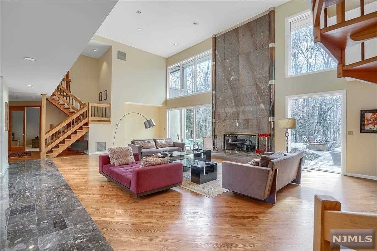 Elements of light and space combine in dramatic fashion in this sophisticated contemporary retreat. With five bedrooms and 6-1/2 bathrooms, including a first-floor bedroom with en-suite bath, this almost 7,000 square foot home lends itself perfectly to a versatile lifestyle. Boasting a highly sought after home office with private entrance, plus a finished lower level, this residence will easily become your forever home. Outside, ornamental trees and shrubs dot the landscape, which is anchored by an inviting Gunite pool, and bordered by a meadow, and protected, natural woodlands. Located at the end of a cul-de-sac, this location provides ultimate privacy with the convenience of proximity to all of Franklin Lakes' offerings, including the Indian Trail Club, Market Basket, and the Nature Preserve, and all within 30 minutes of NYC.