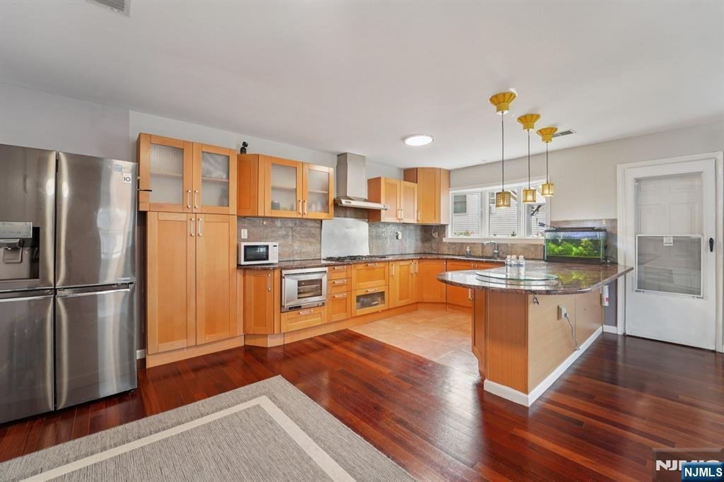 Welcome to this young, custom-built, duplex-style brick home conveniently located in Cliffside Park on the Fort Lee border! Featuring 3 bedrooms, 3.5 baths and an oversized 2-car garage, this townhome on a tree-lined quiet street also offers a large deck and spacious yard. The main level is perfect for today's lifestyle with an open layout boasting cherry hardwood floors throughout, a gas fireplace, gourmet kitchen with granite counters and high-end appliances, and corner walls of windows allowing abundant natural light. The kitchen has access to a private deck with stairs to the fenced-in yard for gardening and outdoor enjoyment. A guest bedroom with full-bath complete the main floor. The upper level features an oversized primary suite with tray ceilings, walk-in closet and bath with jacuzzi, along with another large third bedroom with a full hall bath. Central A/C, first-floor laundry, and an oversized tiled garage complete this modern home. Come visit and make it yours!