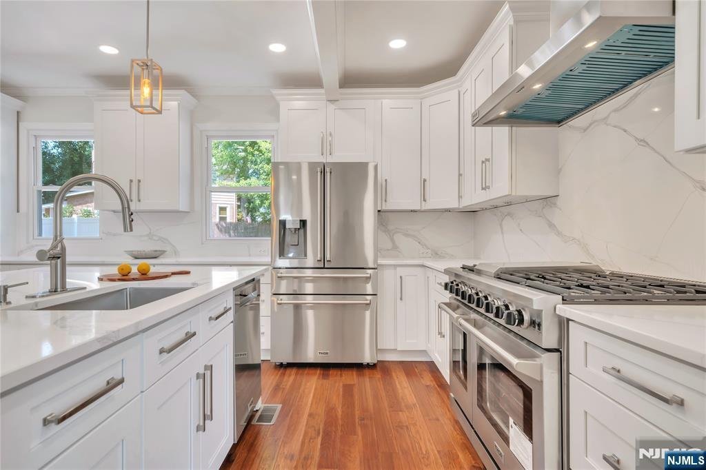 Modern Farmhouse ââ¬â All New & Move-In Ready. Rebuilt to the studs in 2025, with every system newââ¬âroof, siding, windows, systems, and every finishââ¬âdesigned with style and top-quality workmanship. The south-facing open main level is filled with natural light, soaring ceilings, wide-plank hardwood floors, and a gorgeous kitchen with an oversized quartz island, custom cabinetry, and premium appliancesââ¬âmade for entertaining. From the kitchen through the mudroom, the fenced backyard creates effortless indoorââ¬âoutdoor living. Upstairs, three bedrooms are grouped on one side, while a private 4th suite with full bath is set apart on the otherââ¬âideal for guests or a home office. The primary suite includes a walk-in closet and spa-inspired bath with rain shower, soaking tub, and double vanity. Built with Energy Efficiency and Advanced Soundproofing Insulation, this home offers both comfort and peace of mind. Just 10 miles to the GW Bridge, located in Norwood with Top-Rated Northern Valley schoolsââ¬âthis is the home that ends your search! 829 Broadway Norwood NJ Listing with Lana Henriques