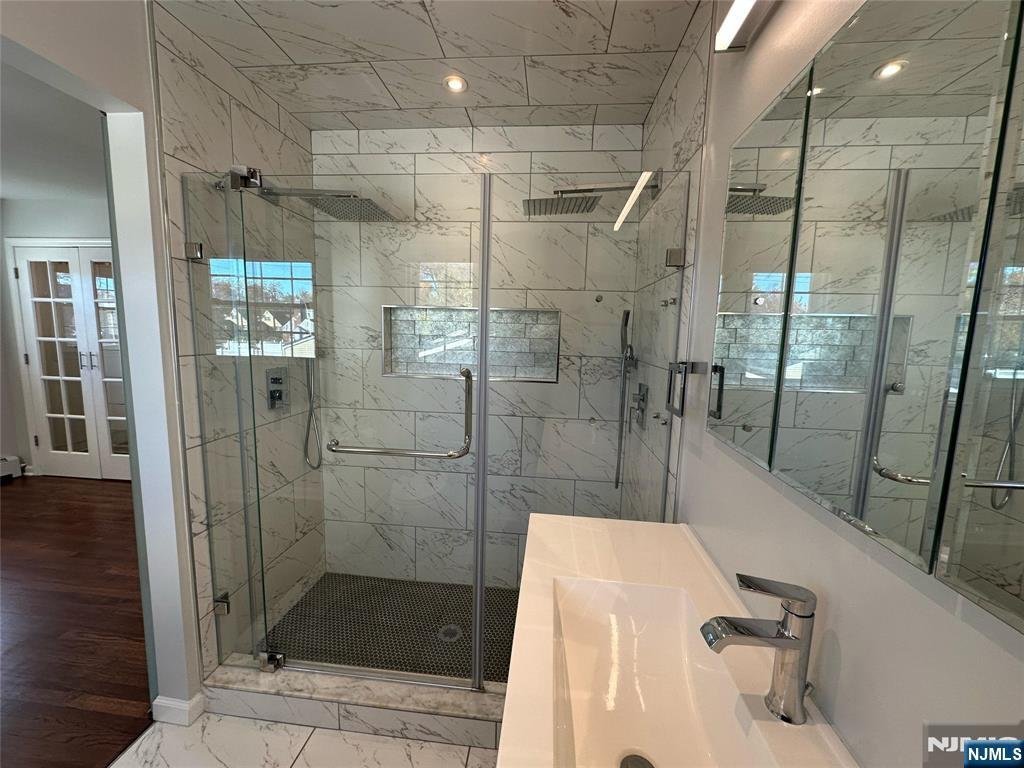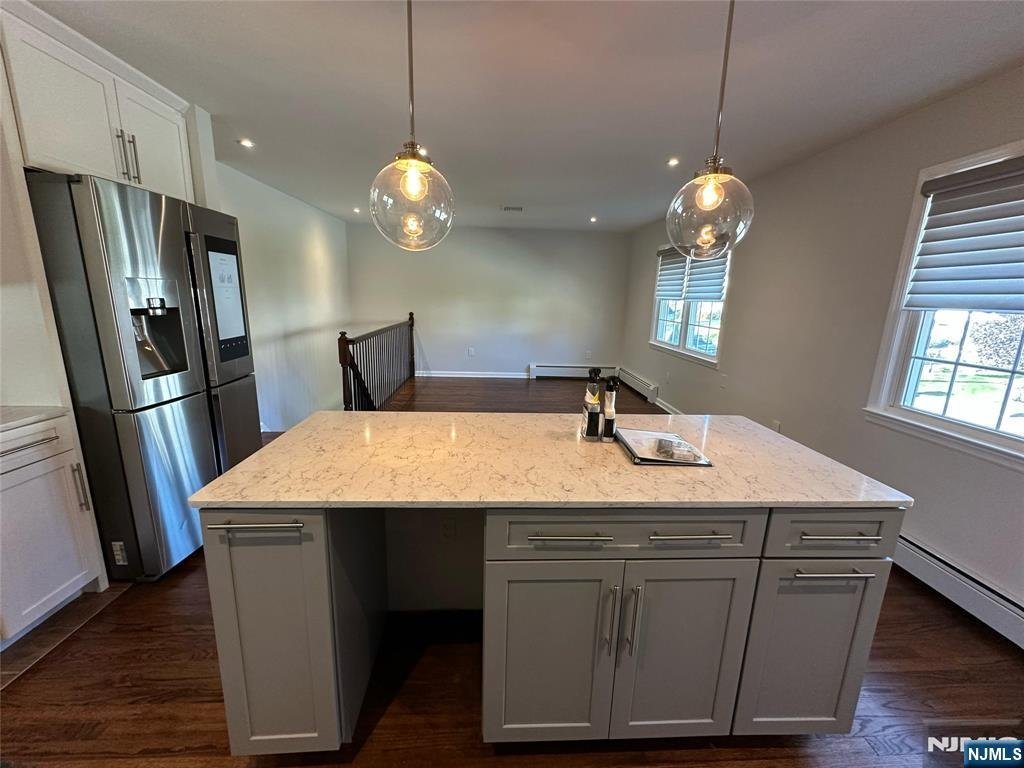 Welcome to this freshly painted and well-maintained 3-bedroom, 3-bathroom home on a quiet residential street in Bergenfield. The main level features an open kitchenââ¬âliving area that creates a warm and inviting flow, perfect for everyday living and entertaining. Bedrooms are well-proportioned and include built-in Elfa closet systems for efficient storage. A finished lower level serves as a bonus living area, complete with a full bathroom, washer and dryer, and a kitchenette, with direct access to the fenced-in backyard ââ¬â ideal for extended living, guests, or gatherings. Additional highlights include central AC, an attached heated garage with its own thermostat for flexible use, a 2-car wide paved driveway, a sprinkler system with lawn maintenance in place, solar panels for energy efficiency, and a Tesla charger already installed. This home blends comfort, thoughtful updates, and modern amenities in a prime location close to schools, parks, shopping, and NYC transportation. Truly move-in ready!
