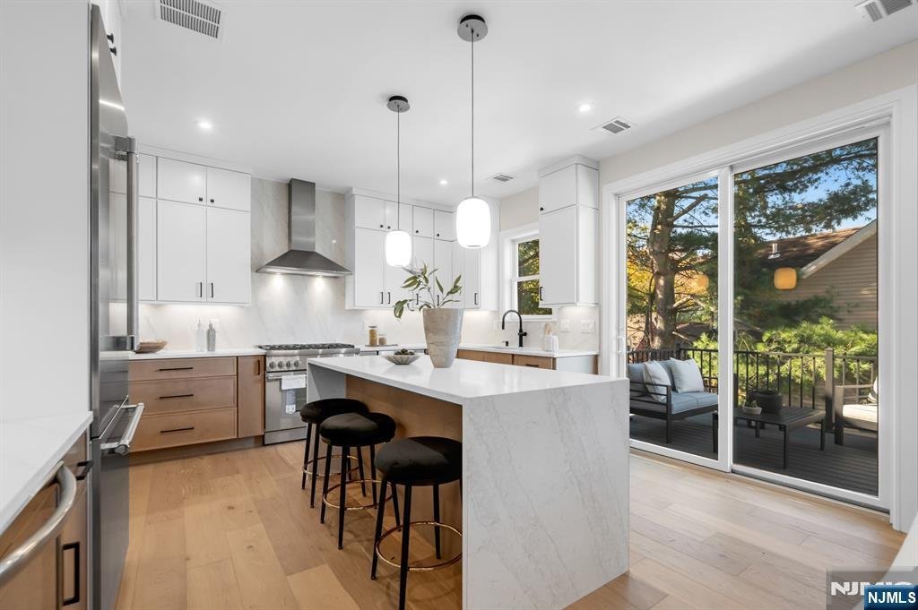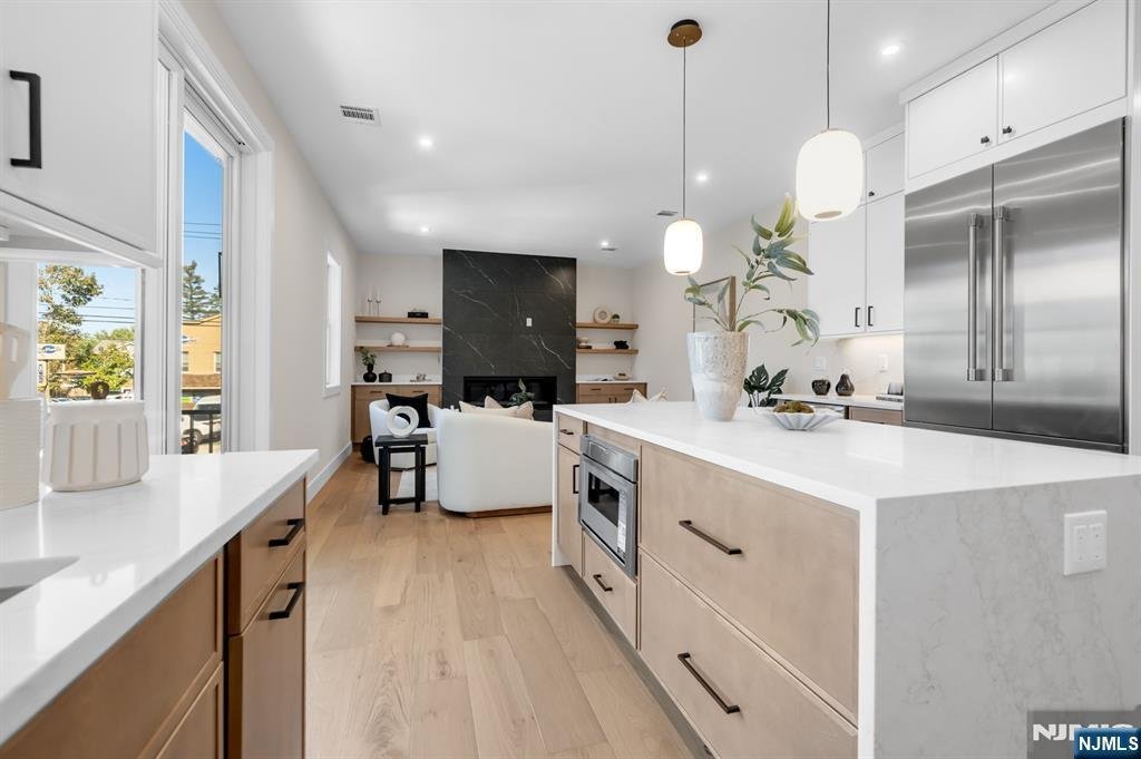 Introducing a brand new collection of boutique townhomes offering a perfect blend of modern elegance and timeless design. Each 3 bedoom, 2 full bathroom, and 2 half bathroom residence showcases stunning architectural details, high-end finishes, & a thoughtfully designed layout across 3 spacious levels. The main level features an open-concept living space highlighted by a gourmet kitchen with a large center island, professional-grade stainless steel appliances, & quality cabinetry. The elegant living room boasts a gas fireplace with built-ins, creating a warm and inviting atmosphere for everyday living. The primary suite is conveniently located on this level and includes a walk-in closet & a luxurious en-suite bath with double vanity & spa-style shower adorned with designer tile and fixtures. The upper level offers 2 large bedrooms, a beautifully appointed full bathroom, a large storage closet, & an unfinished bonus room, ideal for a home office, gym, or studio. On the ground level, enjoy the convenience of an attached 1 car garage, a family or flex room, powder room, and laundry/utility area. Outdoor living is elevated with a Trex deck off the main level & a paver patio below. In the heart of Ramsey, just steps from shops, restaurants, and the Ramsey Farmers Market, with a short walk to the train station for an easy NYC commute. Discover refined suburban living at its finest, luxury, location, & lifestyle all in one.