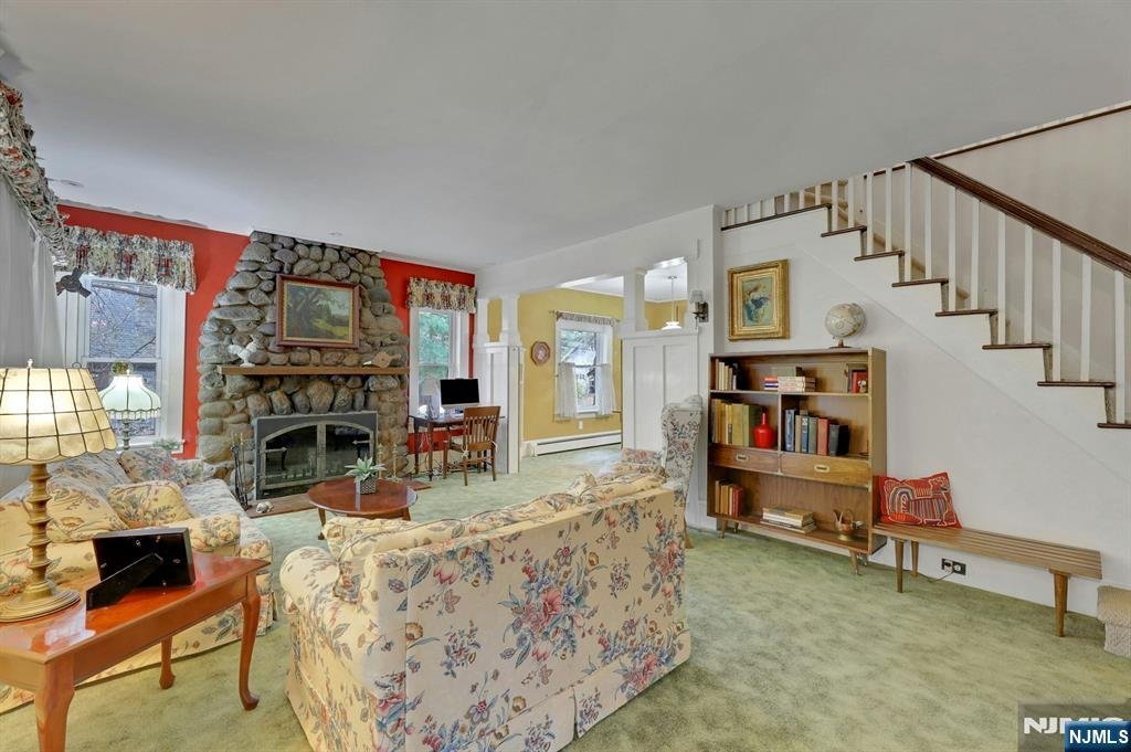 Charming 5-bedroom cape in a sought-after Mahwah neighborhood. Welcome to this inviting 5-bedroom, 1 1/2-bath Cape on a quiet, tree-lined street in one of Mahwahââ¬â¢s most desirable neighborhoods. With its classic stone exterior, generous setback, and timeless curb appeal, this home combines early 1900s character with a warm, comfortable feel. The first floor features a bright living room with a fireplace, a welcoming dining room perfect for gatherings, and a delightful three-season room with large, inviting windows that fill the space with glistening natural light ââ¬â ideal for your morning coffee or relaxing evenings. The kitchen includes a cozy eat-in nook that gives off vintage cottage vibes and itââ¬â¢s adjacent to a nice-sized patio overlooking the peaceful backyard. Two comfortable first-floor bedrooms and a full bath add convenience and versatility for guests, a home office, or one-level living. Upstairs youââ¬â¢ll find three additional bedrooms and a half bath. The detached one-car garage and the long driveway afford plenty of parking, and the full unfinished basement offers plenty of storage or future finishing potential. Set on a tranquil lot close to parks, a blue-ribbon elementary school, and NYC transportation, this charming Mahwah home blends classic character with practical living ââ¬â all at a VERY attractive price that provides a great opportunity to get into a wonderful neighborhood and put your own stamp on this classic charmer. Come fall in love!